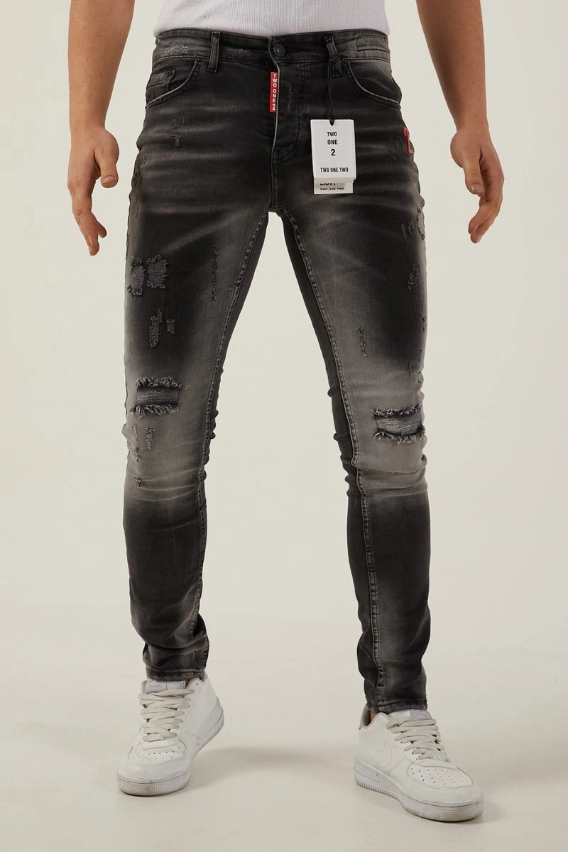 - [FIT GUIDE] Slim Fit Ripped Jeans met halfhoge taille. Ruimer aan de bovenkant en smaller naar de enkel toe. Jeans met taps toelopende pijpen voor heren met vijf zakken. Makkelijk te combineren met tops en schoenen. Probeer een maat groter als je meer van relaxt houdt. Postmoderne jeans met iconische look. Geldig voor alle seizoenen.