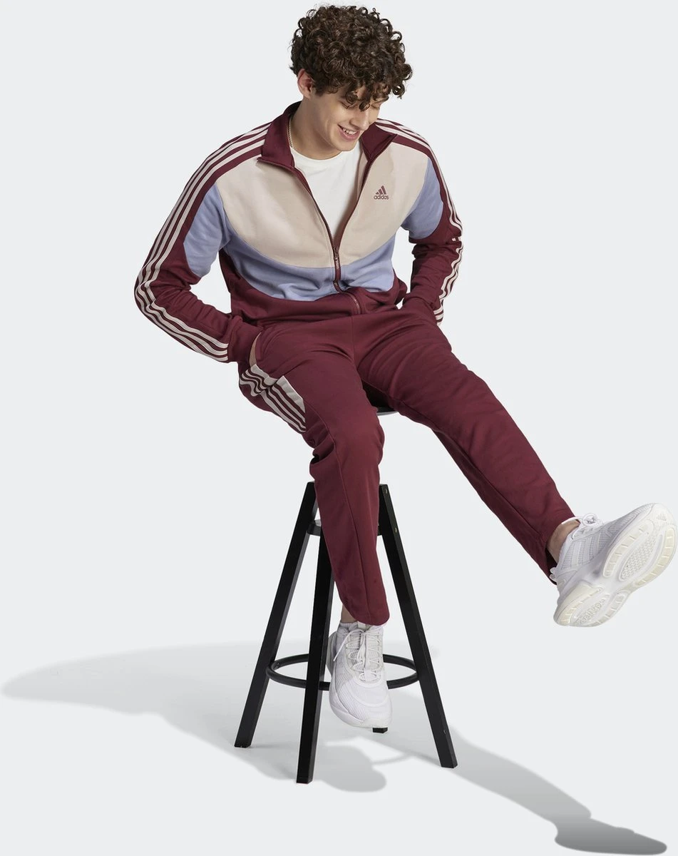 Dit colorblocked adidas trainingspak biedt eindeloos veel mogelijkheden. De comfortabele basic helpt je om de wereld aan te kunnen, zelfs als dat vandaag toevallig alleen een powerwalk naar je favoriete koffietentje omvat. Met een trekkoord in de taille om de broek goed te laten passen, en een opstaande kraag waardoor het jack netjes aansluit, zie je er in dit trainingspak moeiteloos geweldig uit.
