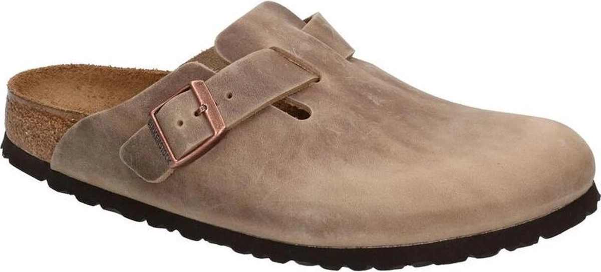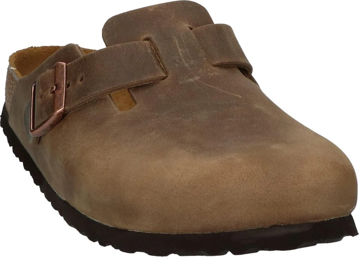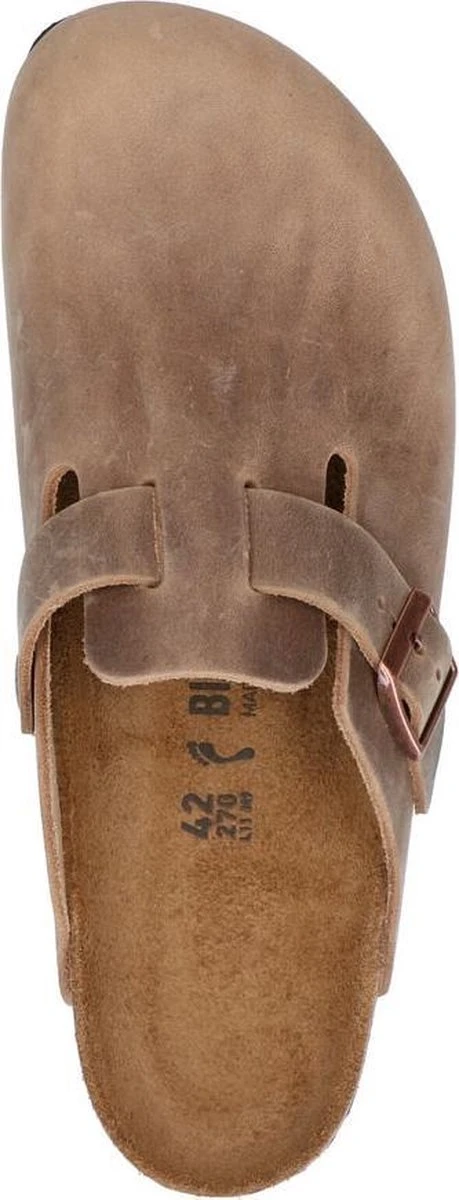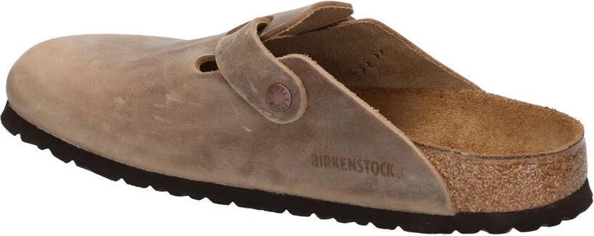 Bruine Birkenstock Boston instappers van leer, voorzien van een kurken voetbed met daarop een binnenzool van suède. Deze combinatie van materialen zorgt ervoor dat de Birkenstock instappers optimaal comfort en ondersteuning bieden voor jouw voeten. Deze schoenen zijn geschikt voor dames en heren! Ze zijn voorzien van een brede band met verstelbaar riempje waardoor de instappers af te stellen zijn aan de vorm van de voeten. Aan de binnenzijde van de instappers zit een merkopdruk. Deze Birkenstock Boston instappers zijn uitgevoerd in een smalle tot slanke leest.