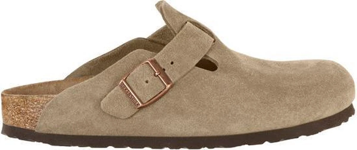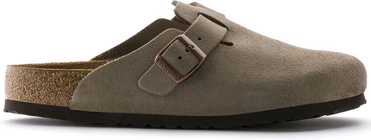 De BIRKENSTOCK clog Boston is een echte klassieker die zonder problemen het hele jaar door kan worden gedragen. Birkenstock Boston Taupe Smal Voetbed – Heren Slipper – 560773 De BIRKENSTOCK clog Boston is een echte klassieker die zonder problemen het hele jaar door kan worden gedragen. Het zachte voetbed zorgt dankzij de geïntegreerde schuimlaag voor een extra dosis draagcomfort en verwent de voet, de hele dag. Voor een natuurlijk design zorgt ook het bovenmateriaal van buitengewoon zacht suède dat zich als een tweede huid naar de voet voegt. * Origineel BIRKENSTOCK zacht voetbed; anatomisch gevormd * Bovenmateriaal: suède * Dekzool: suède * Zool: EVA * Details: een band met een individueel verstelbare gesp van metaal; zacht voetbed * “Made in Germany”
