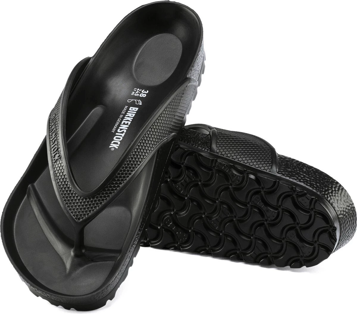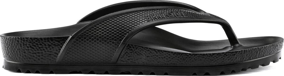 De Birkenstock Honolulu is een sportieve teenslipper met en zeshoekig motief. Perfect voor iedereen die functionaliteit en draagcomfort belangrijk vindt. De slipper is gebaseerd op de kurkslipper en bestaat uit het bijzonder lichte, flexibele materiaal EVA. De hoogwaardige, geurneutrale en op schadelijke stoffen geteste kunststof is schokabsorberend, waterbestendig en huidvriendelijk. De slipper is daarom ideaal voor op het strand, in de tuin of in de spa. Het anatomisch gevormde voetbed geeft stabiliteit en een groot draagcomfort.