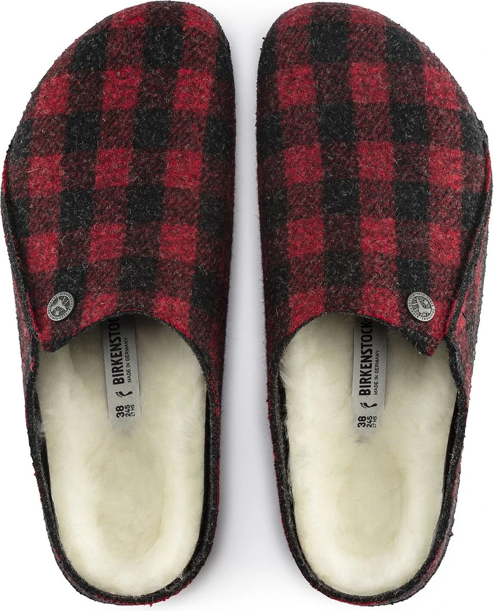 Met de Birkenstock Zermatt pantoffels kies je voor kwaliteit, comfort en instapgemak. De Zermatt-serie onderscheidt zich met een uitneembaar voetbed, wat de mogelijkheid biedt om af te wisselen met de inlegzolen. Zo kun je voor de verschillende seizoenen de juiste inlegzool kiezen. Deze variant wordt standaard geleverd met het heerlijk zachte en warme Shearling Footbed. Het anatomisch gevormde voetbed is voorzien van dekzool met knuffelzacht lamsvel. Perfect voor de koude wintermaanden. Het bovenmateriaal is van zacht wolvilt en voorzien van stijlvol ruitjesmotief. Het biedt een aangenaam voetklimaat met een constante temperatuur en uitstekende vochtabsorptie. De onderzijde is afgewerkt met latex voor goede grip op gladde ondergronden.
