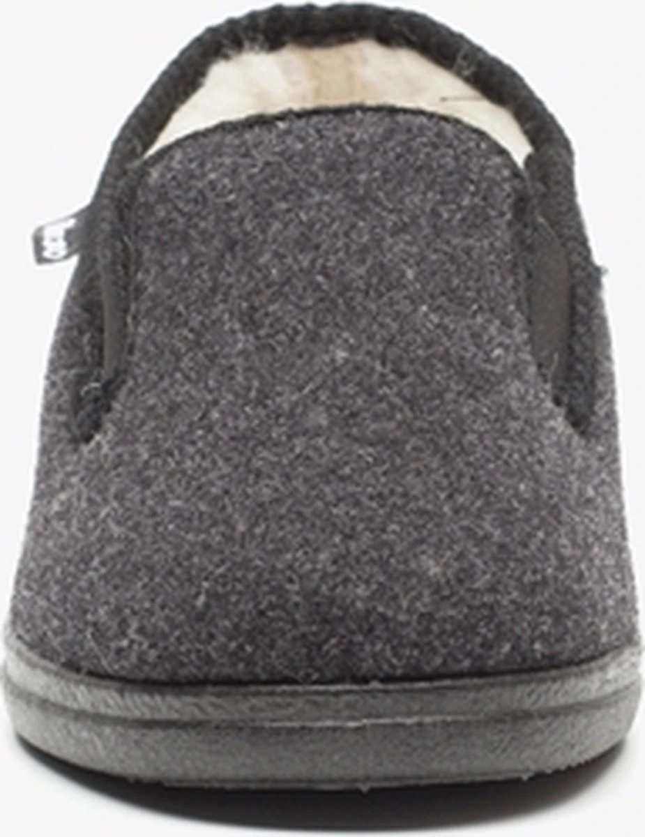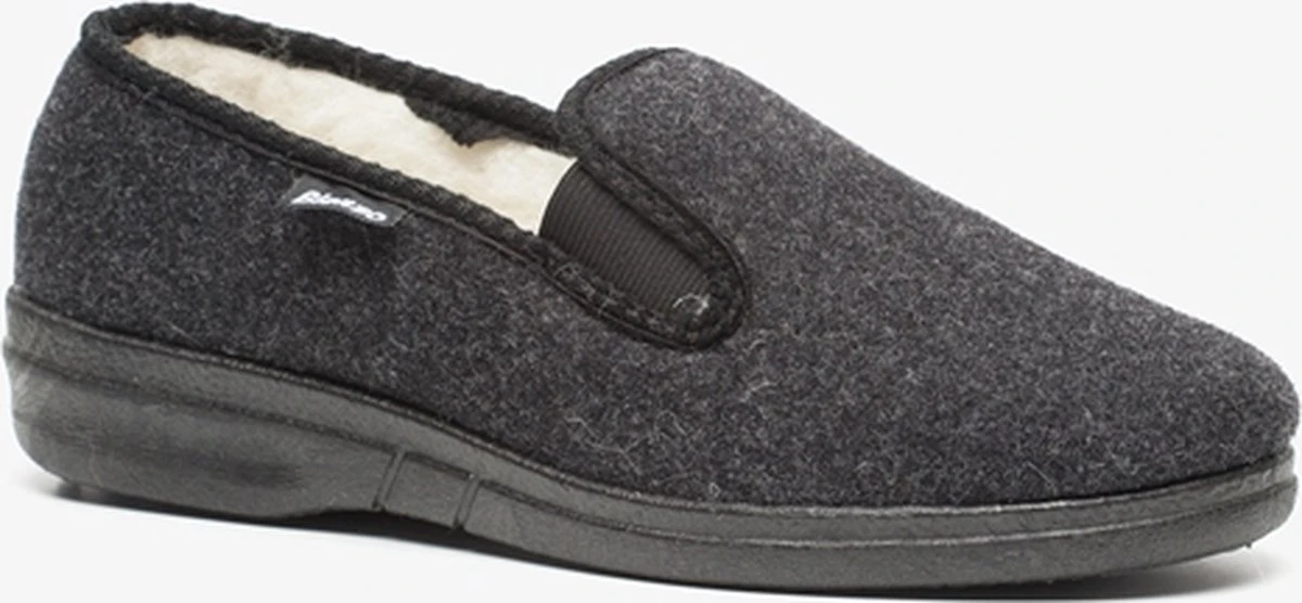 Zwarte heren pantoffels van Blenzo van imitatieleer en textiel, met een lekker zachte voering. Voorzien van een elastische sluiting wat het aan- en uit trekken makkelijk maakt. De pantoffels hebben een profielzool en een laag hakje.
