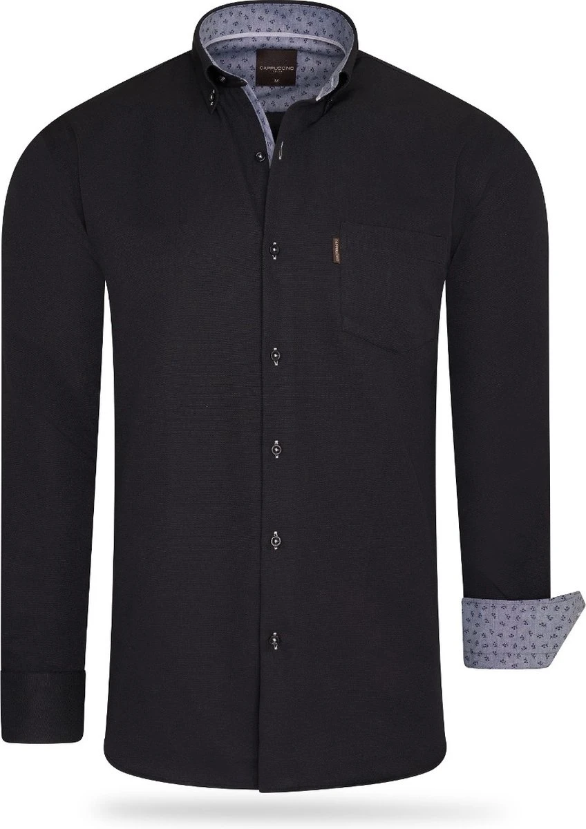 Dit Cappuccino – Heren Overhemd – Borstzakje – Zwart- speciaal voor heren- van het merk Cappuccino is verkrijgbaar in de kleur Zwart.