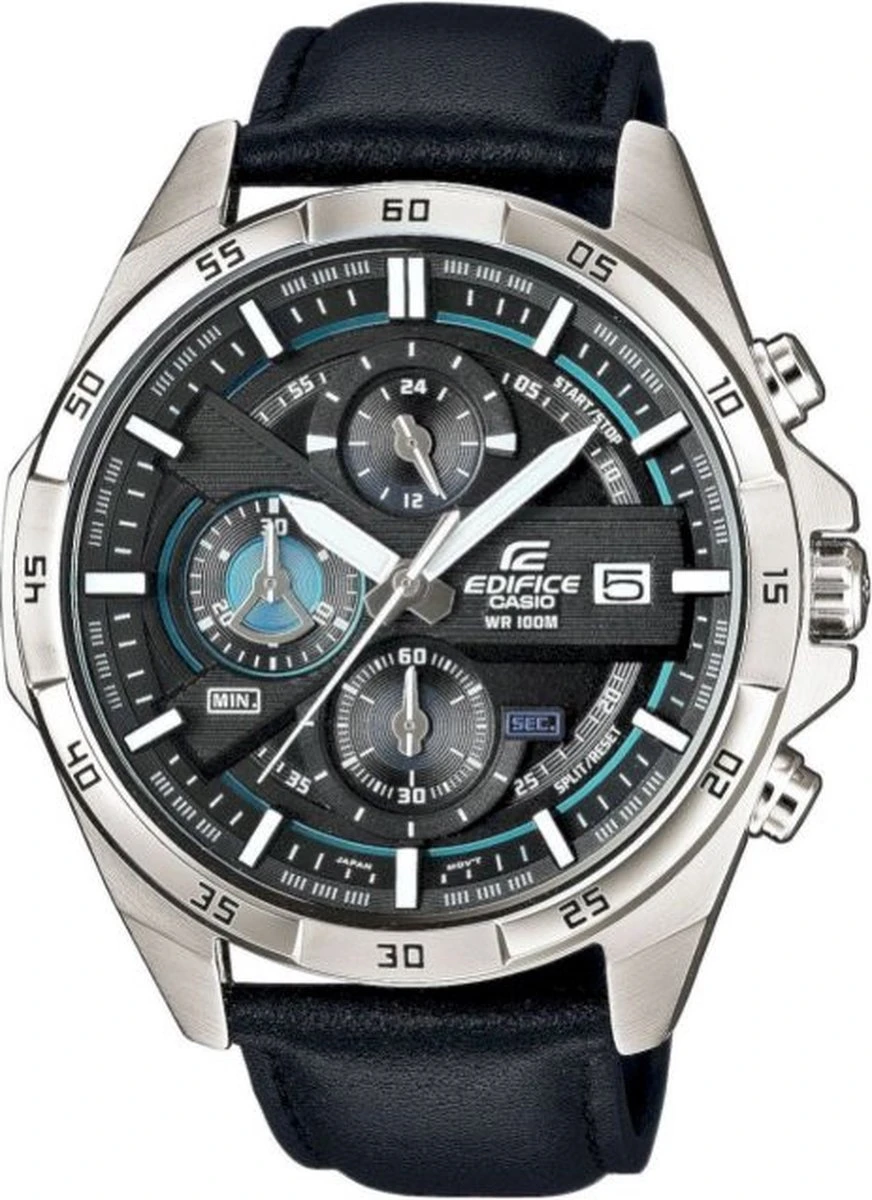 De Sports Edition collectie van Casio Edifice bestaat uit modieuze horloges voor heren met smaak. Dit horloge heeft een stijlvolle band en de kast van het horloge is met zorg afgewerkt. De Casio Edifice Sports Edition is zwart van kleur en de horlogekast heeft een afmeting van 48.7 mm. Het bandje van het horloge is gemaakt van hoge kwaliteit roestvrij staal. Zwart-blauwe heren chronograaf met datum.