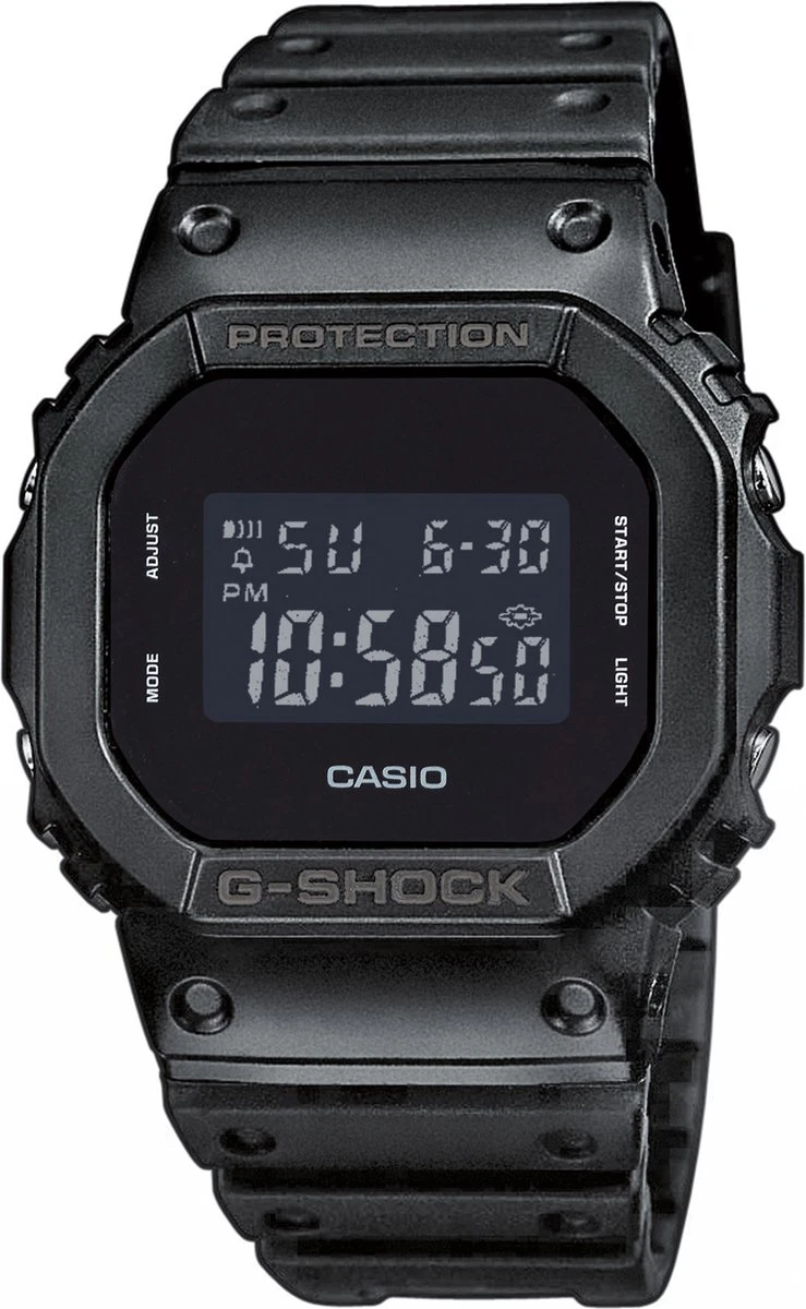 Dit horloge van Casio heeft een zwarte band gemaakt van resin. Het model behoort tot de populaire serie G-Shock van Casio. Dit horloge geeft je een stoere look. Het merk Casio staat voor kwaliteit, functionaliteit en technologische ontwikkelingen. Het horloge heeft een diameter van 38.5 mm en is voorzien van mineraalglas.