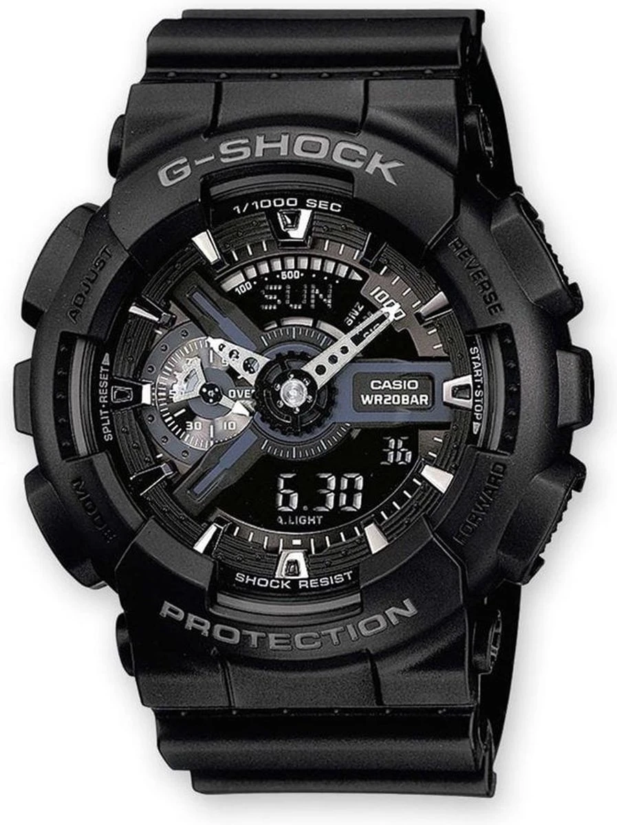 Dit G-Shock herenhorloge van Casio heeft een zwarte kunststof horlogeband en een Quartz uurwerk. De horlogekast heeft een diameter van 50 mm en straalt daarmee een robuurste stevigheid uit. Verder is dit stoere horloge voorzien van handige functie zoals een stopwatch en alarm.