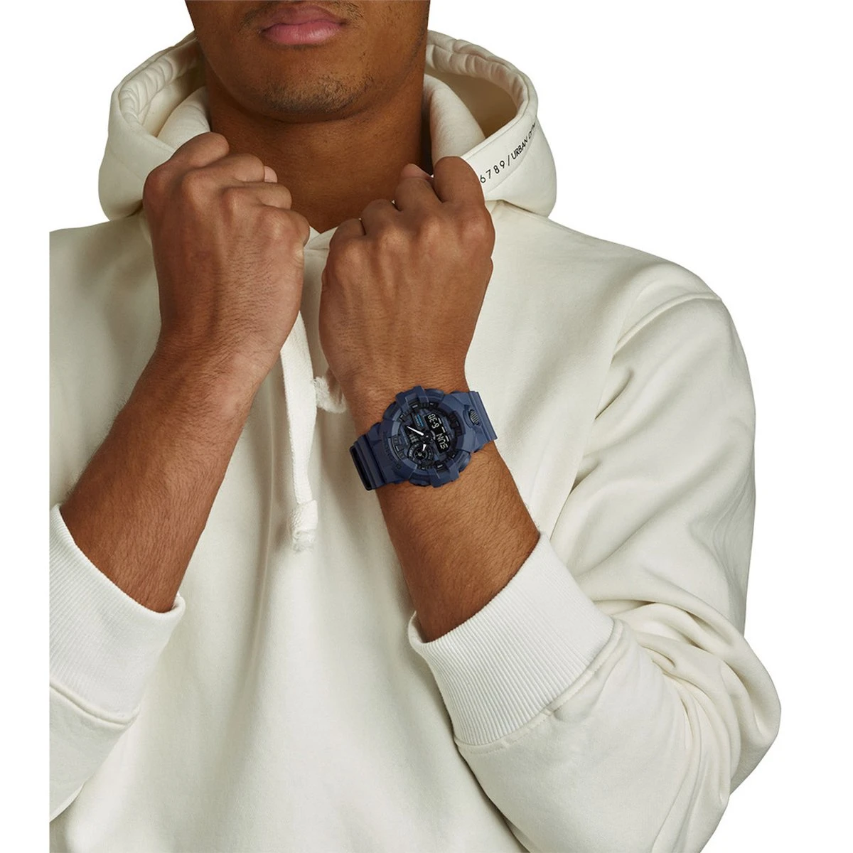 Dit Casio Mannen horloge beschikt over een Quartz binnenwerk. De kast (50 mm) is vervaardigd uit Kunststof (Blauw) en heeft een Mineraalglas. De band is Blauw Kunststof. Dit horloge uit de G-Shock reeks is een mooi en tijdloos geschenk. Verras jezelf of iemand anders met dit cadeau. Bovendien geniet u hierbij van 2 jaar garantie tegen alle fabricagefouten.
