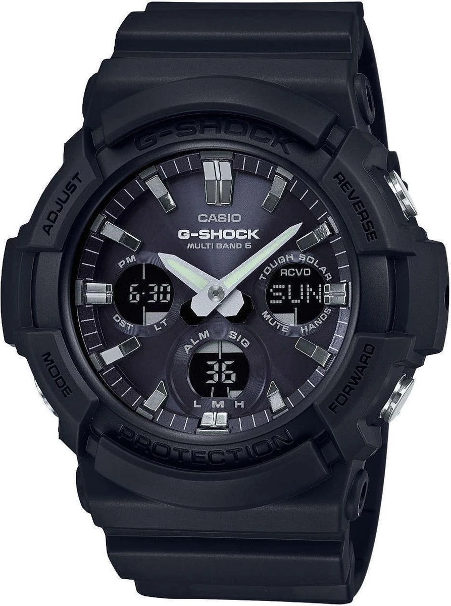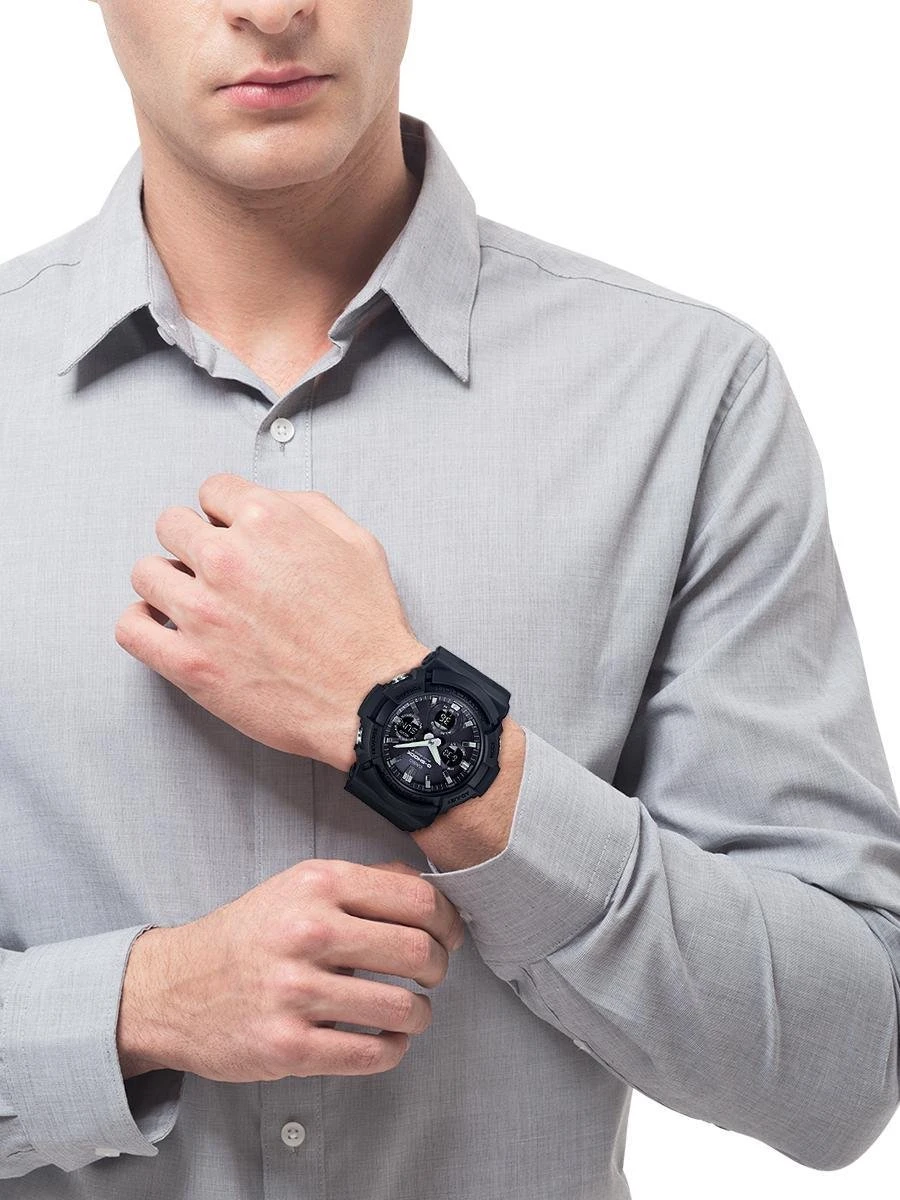 Dit Casio mannen horloge beschikt over een Quartz binnenwerk. De kast (53 mm) is vervaardigd uit kunststof (zwart) en de wijzerplaat wordt afgedekt met mineraalglas. De band is gemaakt van zwart kunststof. Dit horloge uit de G-Shock reeks is een mooi en tijdloos geschenk. Verras jezelf of iemand anders met dit cadeau. Bovendien geniet u hierbij van 2 jaar garantie tegen alle fabricagefouten.