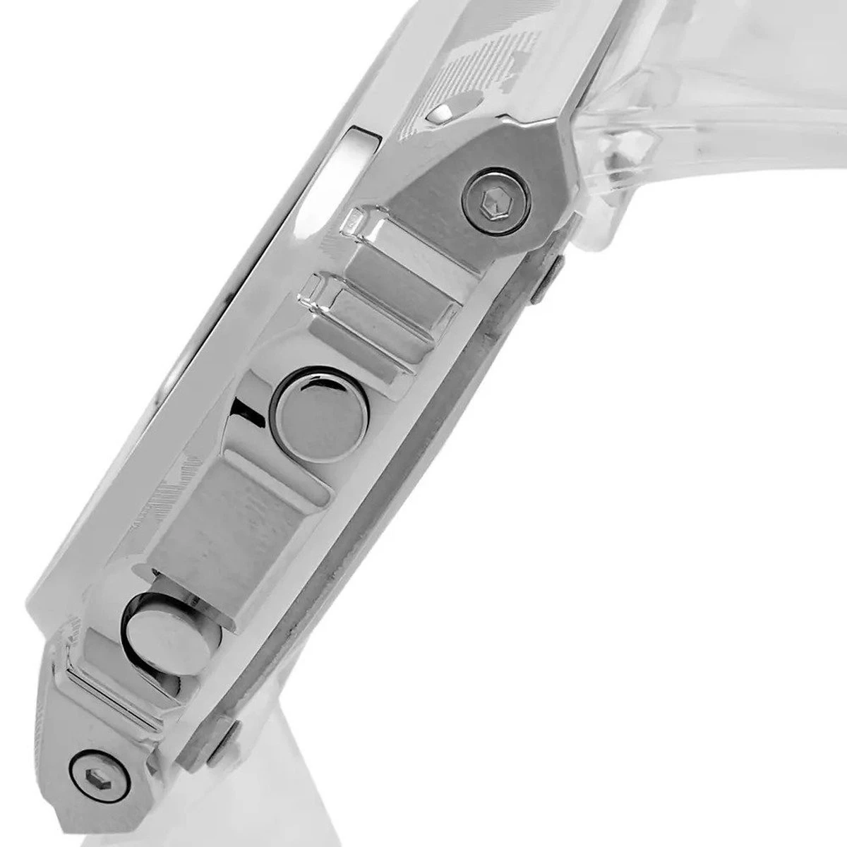 Dit Casio Mannen horloge beschikt over een Quartz binnenwerk. De kast (37 mm) is vervaardigd uit Staal (Zilverkleurig) en heeft een Mineraalglas. De band is Transparant Kunststof. Dit horloge uit de G-Shock reeks is een mooi en tijdloos geschenk. Verras jezelf of iemand anders met dit cadeau. Bovendien geniet u hierbij van 2 jaar garantie tegen alle fabricagefouten.
