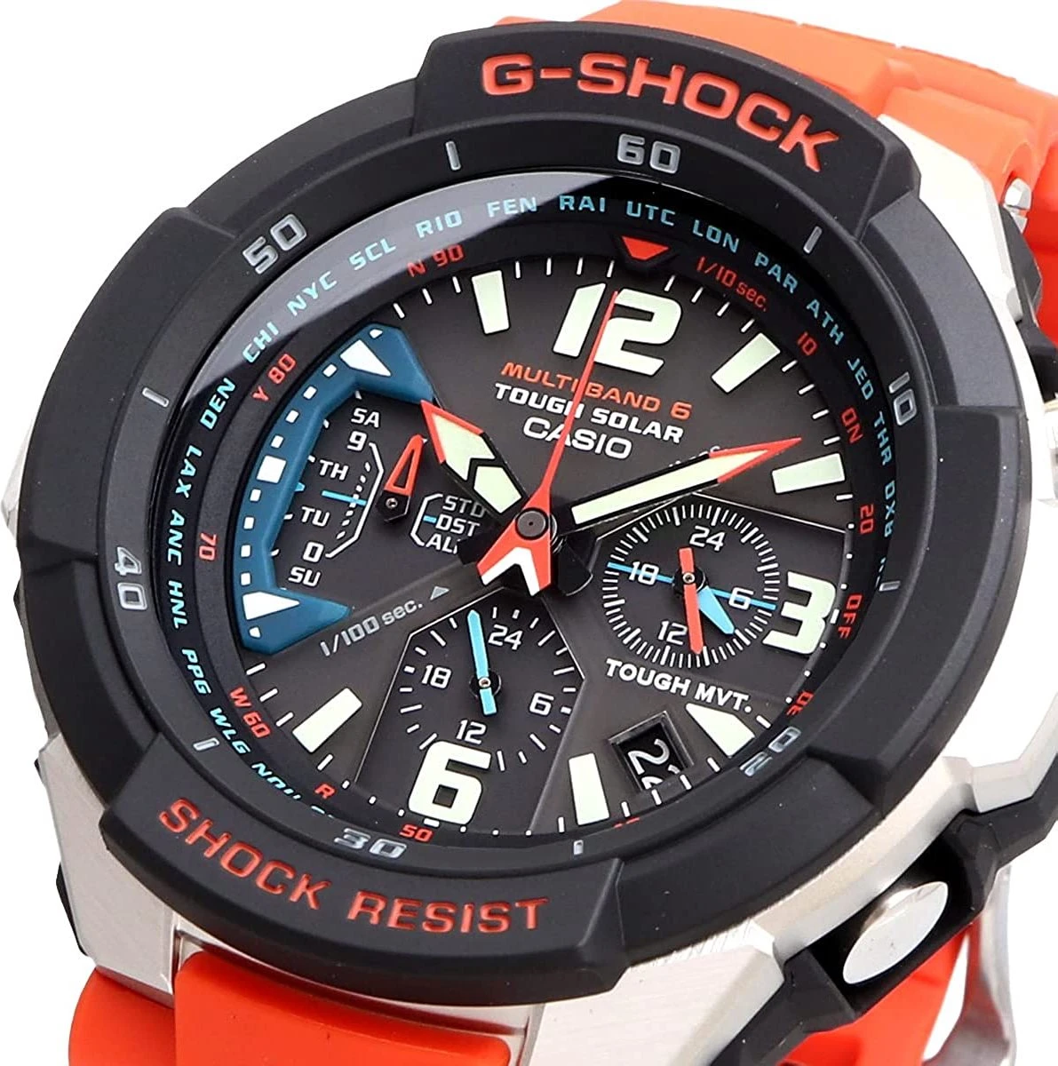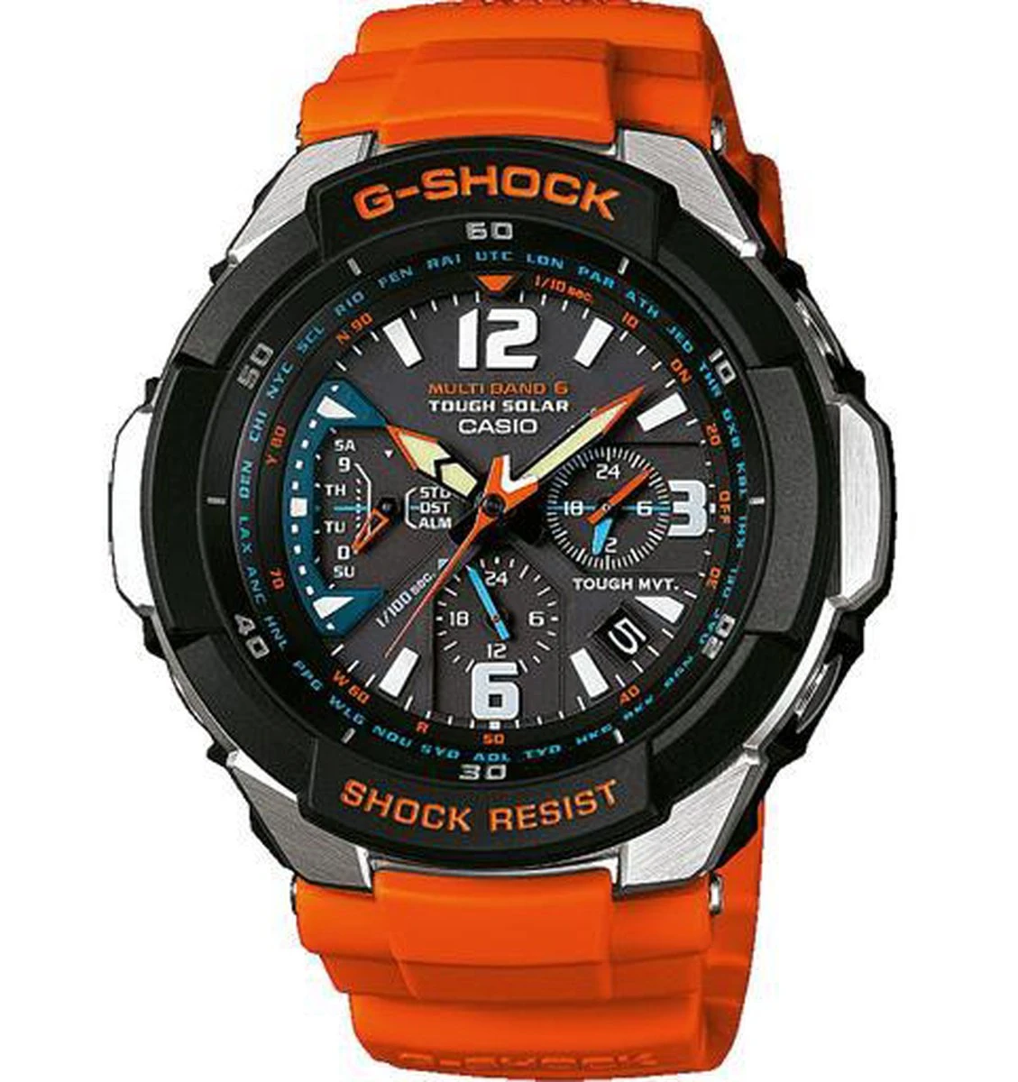 Dit Casio Mannen horloge beschikt over een Quartz binnenwerk. De kast (46 mm) is vervaardigd uit Kunststof (Multi) en heeft een Mineraalglas. De band is Oranje Kunststof. Dit horloge uit de G-Shock Gravity Master reeks is een mooi en tijdloos geschenk. Verras jezelf of iemand anders met dit cadeau. Bovendien geniet u hierbij van 2 jaar garantie tegen alle fabricagefouten.