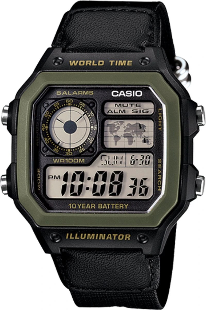 Casio wereldtijd alarm digitaal AE-1200WHB-3BV AE1200WHB-3BV herenhorloge