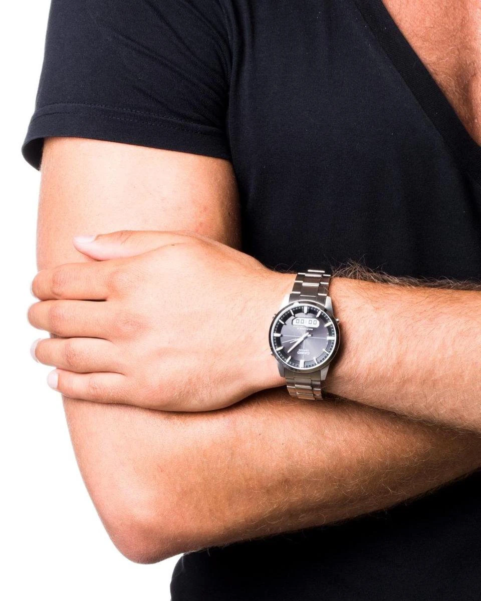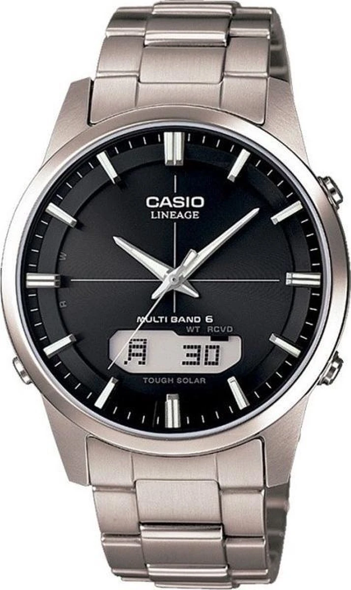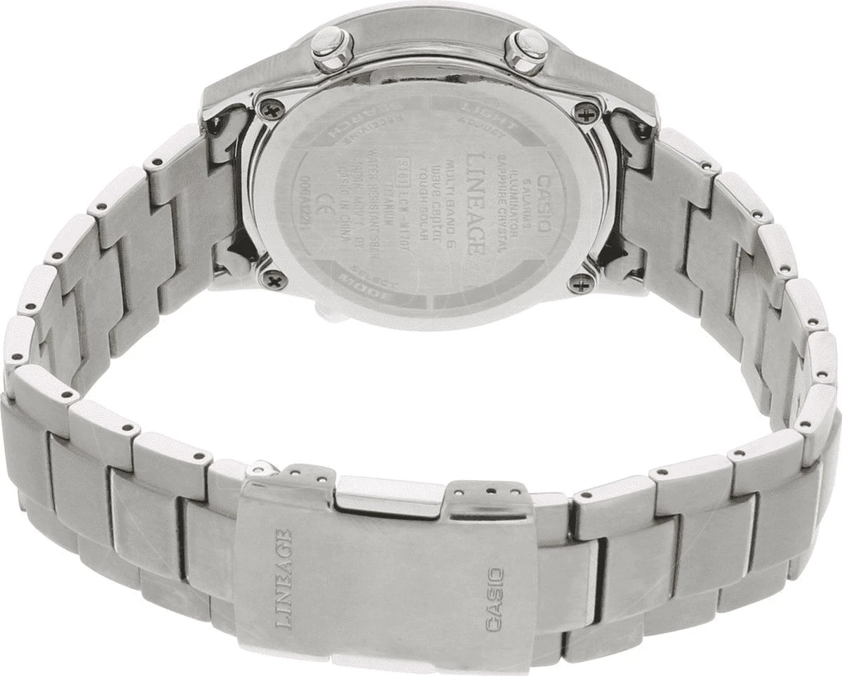 Dit heren Casio horloge beschikt over een quartz uurwerk. Dit horloge komt uit de serie Radio Controlled. Het horloge is zender gestuurd, staat dus altijd op tijd en haalt z’n energie uit licht. Een batterij vervangen is dus overbodig. Het horloge is gemaakt van titanium en is tot 5 ATM (Regen- & spatwaterdicht) waterdicht. Twee jaar garantie op het uurwerk en het horloge wordt geleverd in een luxe doos.