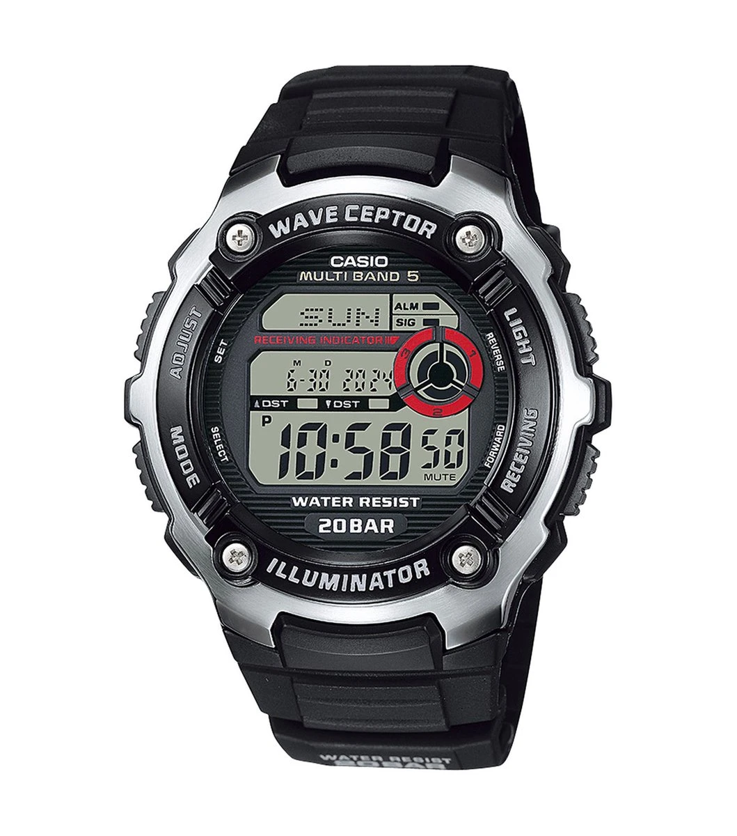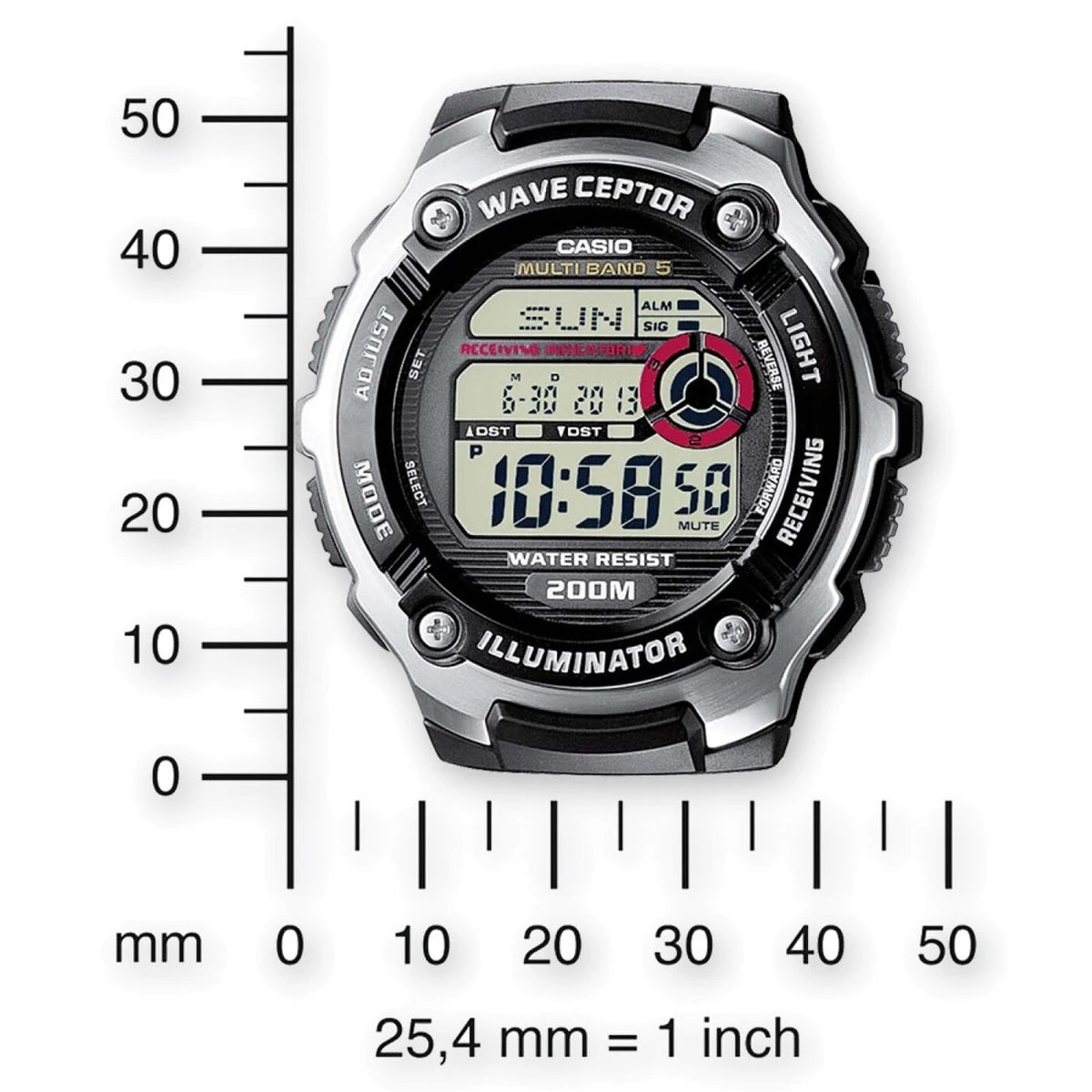 Dit Casio Mannen horloge beschikt over een Quartz binnenwerk. De kast (45 mm) is vervaardigd uit Staal (Zilverkleurig) en heeft een Mineraalglas. De band is Zwart Kunststof. Dit horloge uit de Casio Wave Ceptor reeks is een mooi en tijdloos geschenk. Verras jezelf of iemand anders met dit cadeau. Bovendien geniet u hierbij van 2 jaar garantie tegen alle fabricagefouten.