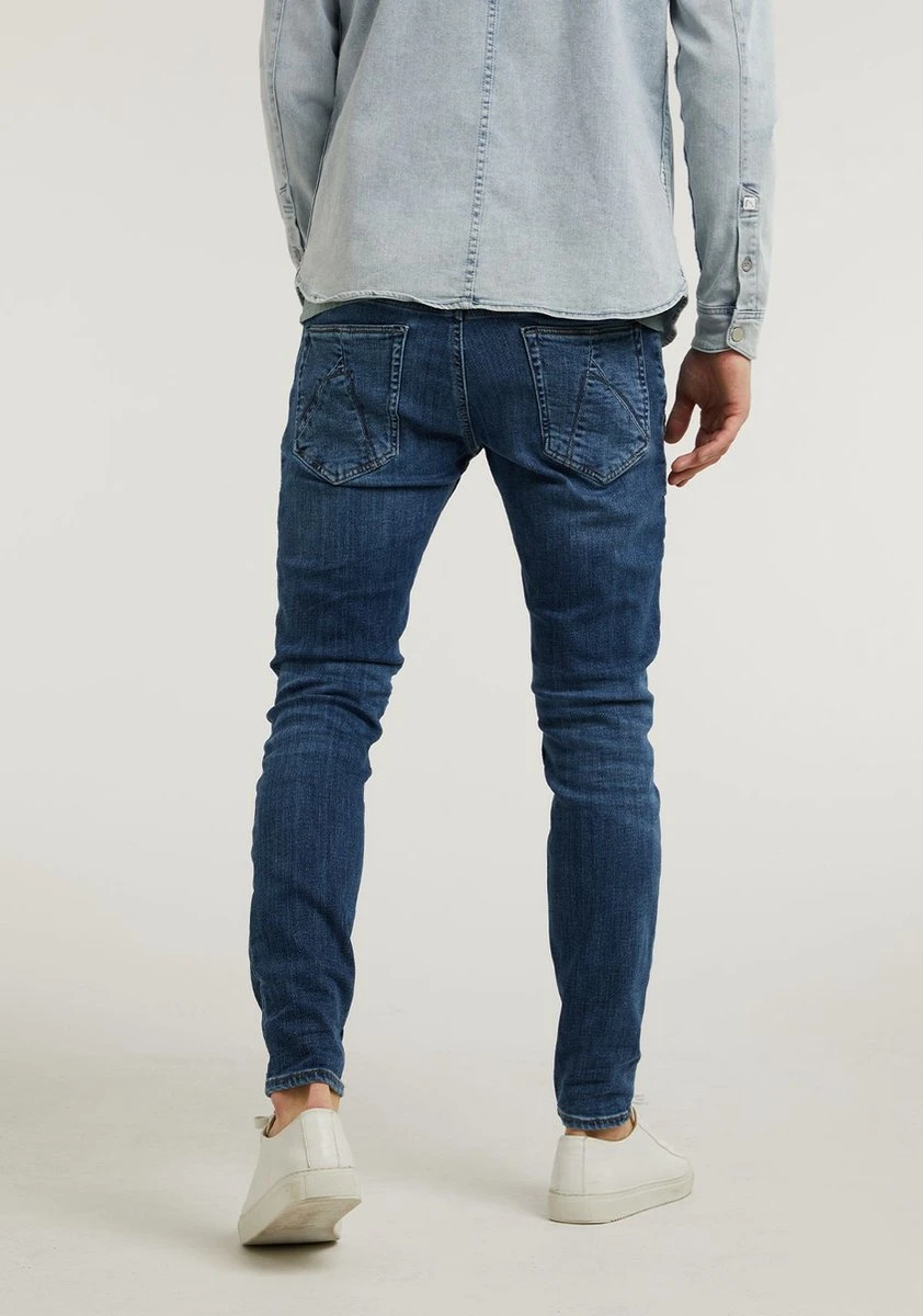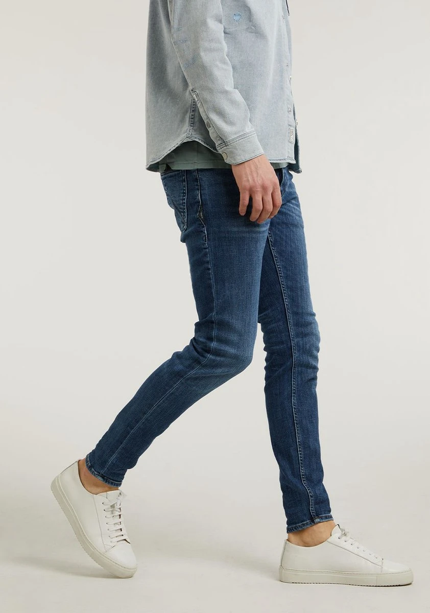 Dit is slim Fit Jeans van ons merk CHASIN’. Deze strecht jeans zit als gegoten. Door de Mid Blue kleur is deze 5-pocket jeans makkelijke te combineren. CHASIN’ branding