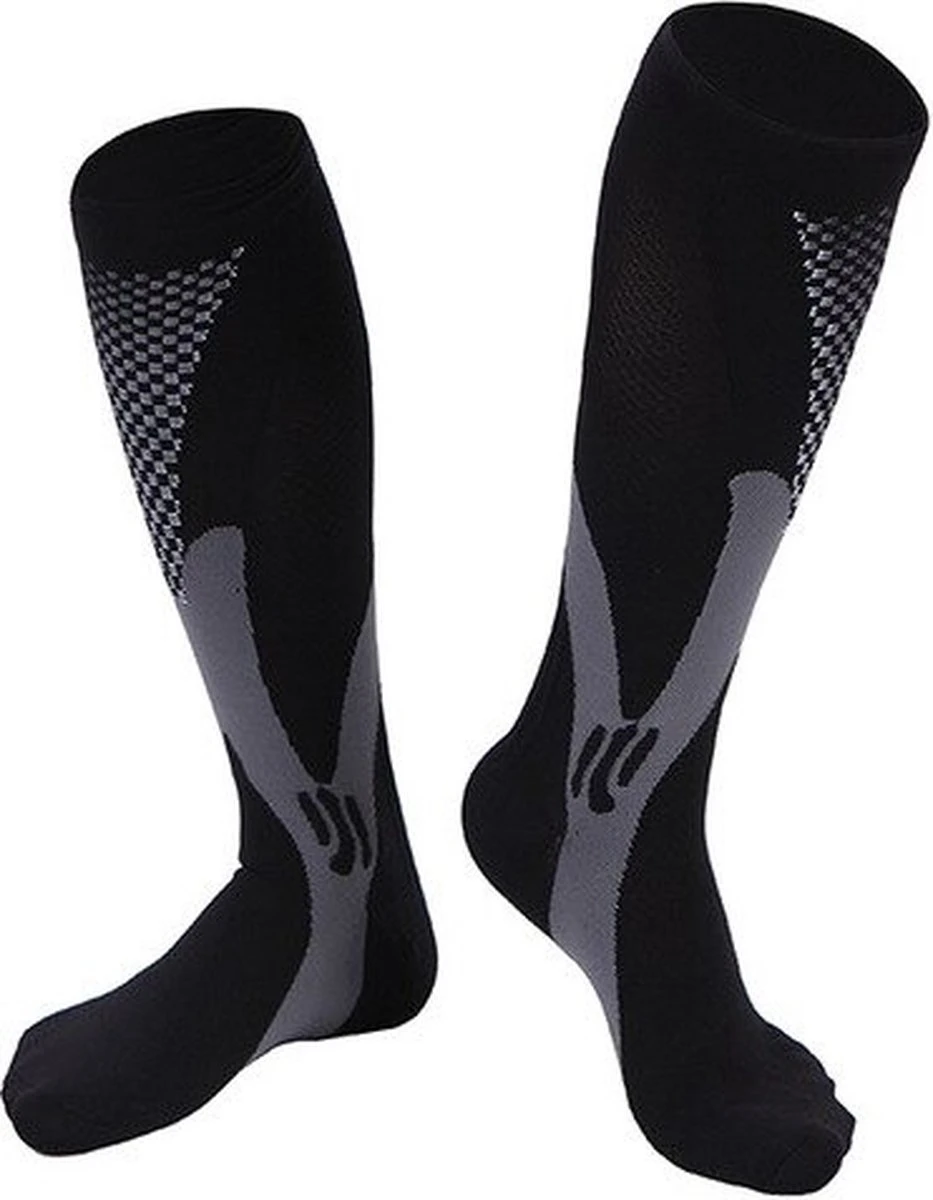 Therapeutische compressie kousen voor het hardlopen (maat 41-44). Deze stevige kousen bieden goede ondersteuning en compressie voor voeten, enkels en kuiten. Hierdoor helpen ze om vervelende pijntjes, krampen, zwellingen, spataderen en ook reisbenen te voorkomen. Daarom zijn deze therapeutische compressie kousen naast het hardlopen ook uitermate geschikt voor (lange) reizen met het vliegtuig.