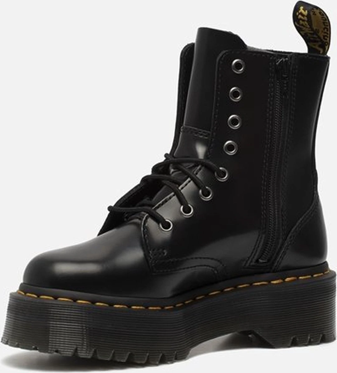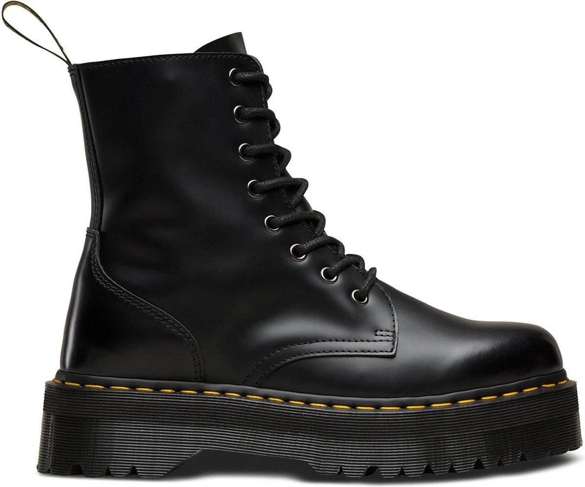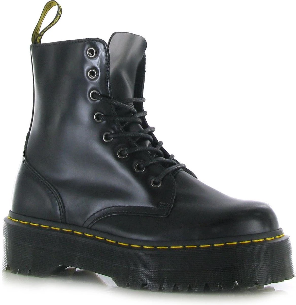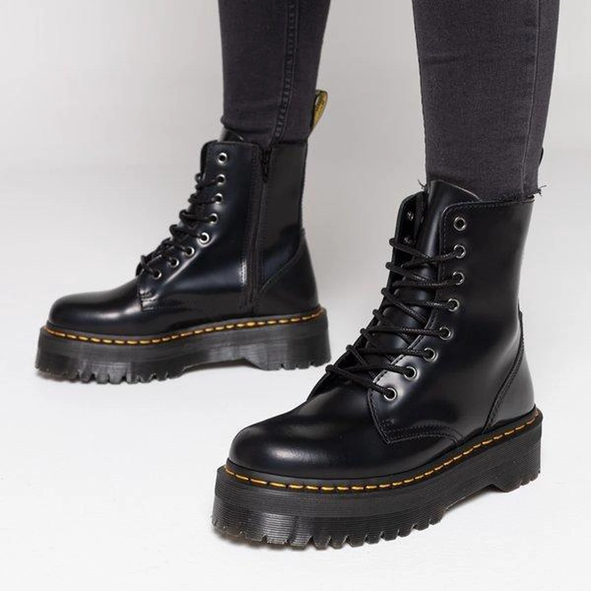 De Dr Martens Jadon in het zwart heeft een glanzende gloed en is gemaakt van leer. Deze Dr Martens boot bevat een plateauzool met een erg goed profiel. De dikke zolen zijn al erg kenmerkend van Dr Martens, maar dit geeft nog weer een erg stoere vintage look!