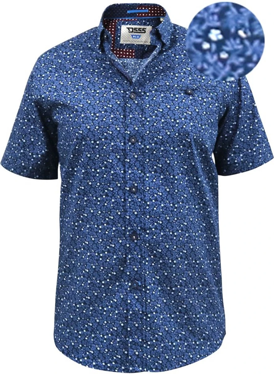 Blauw overhemd met opmerkelijke print van het merk Duke-555. Overhemd is uitgevoerd met klassieke button down kraag en afsluitbaar borstzakje.