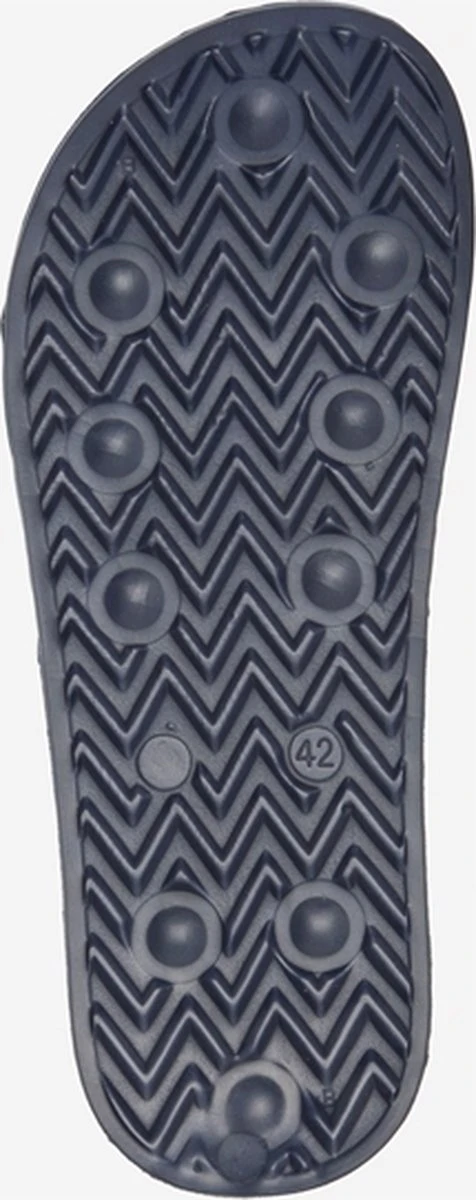 Blauwe badslippers voor heren van Dutchy. Gemaakt van synthetisch materiaal voorzien van een stevige profielzool van rubber. De saunaslippers hebben een comfortabel voetbed en teenband met witte merkopdrukken.