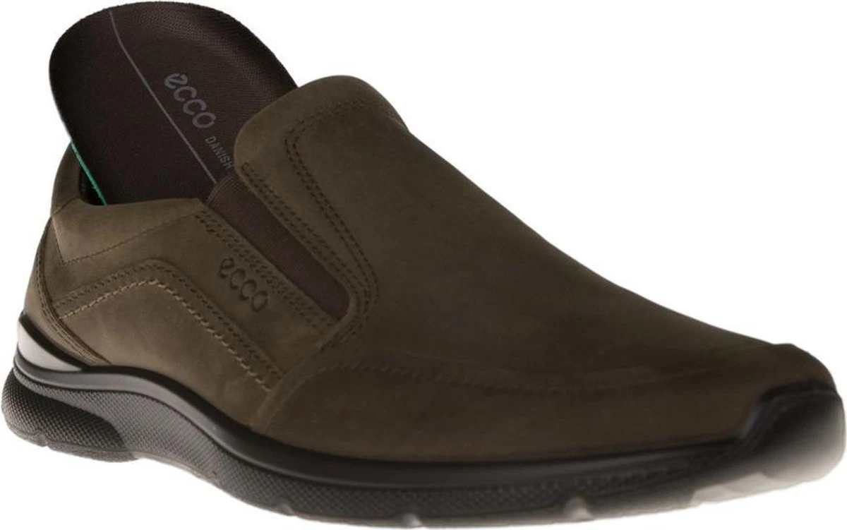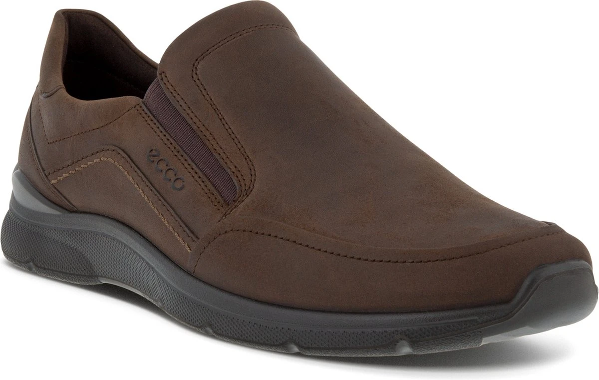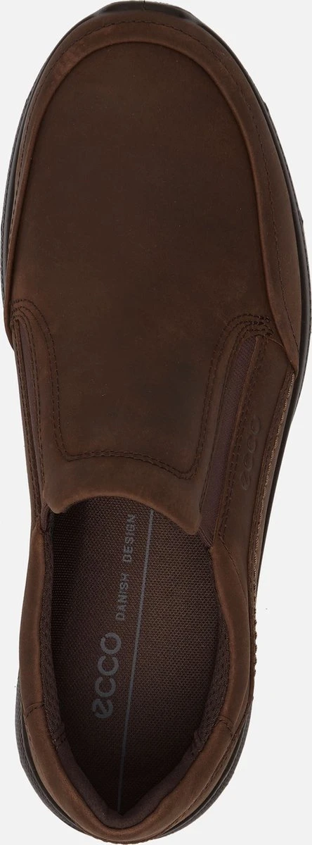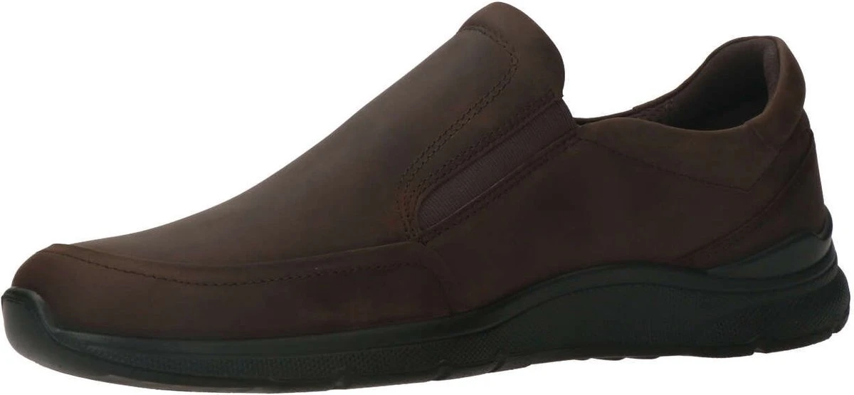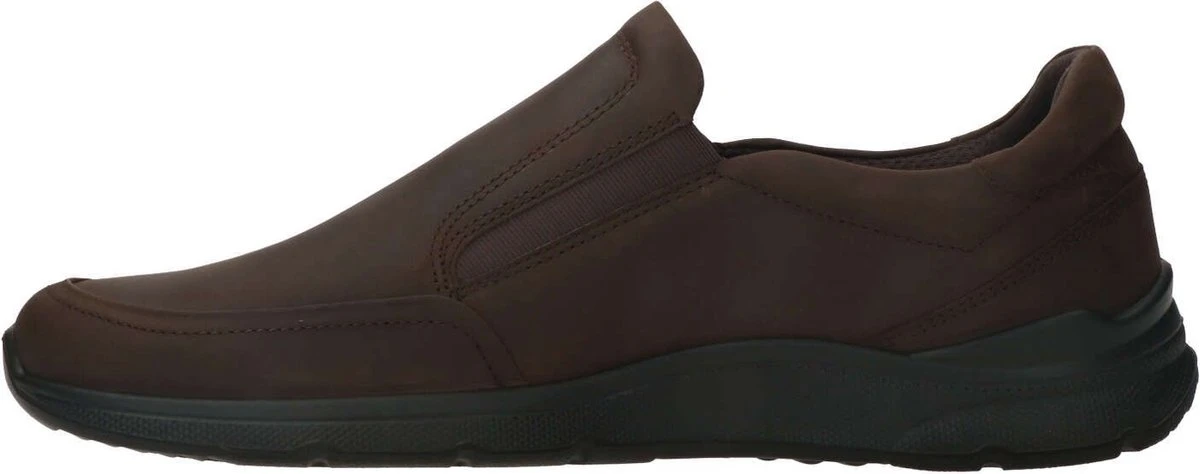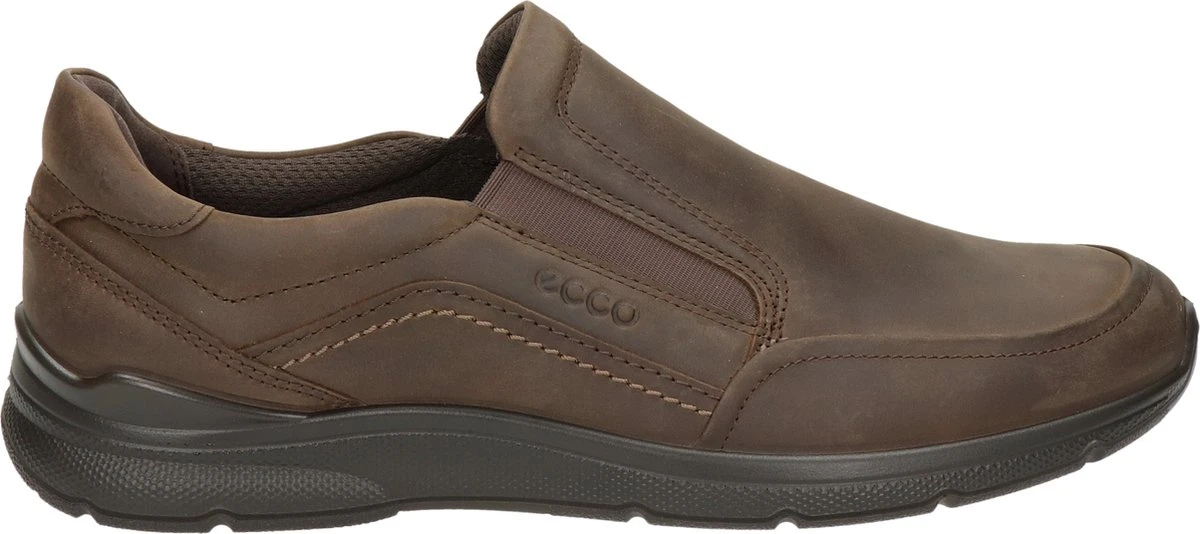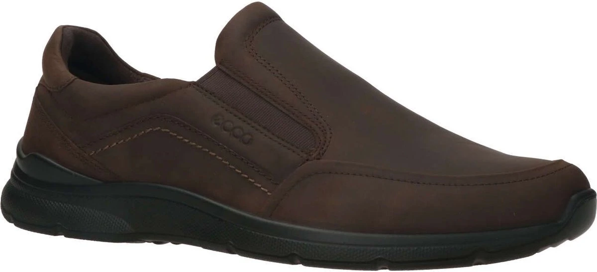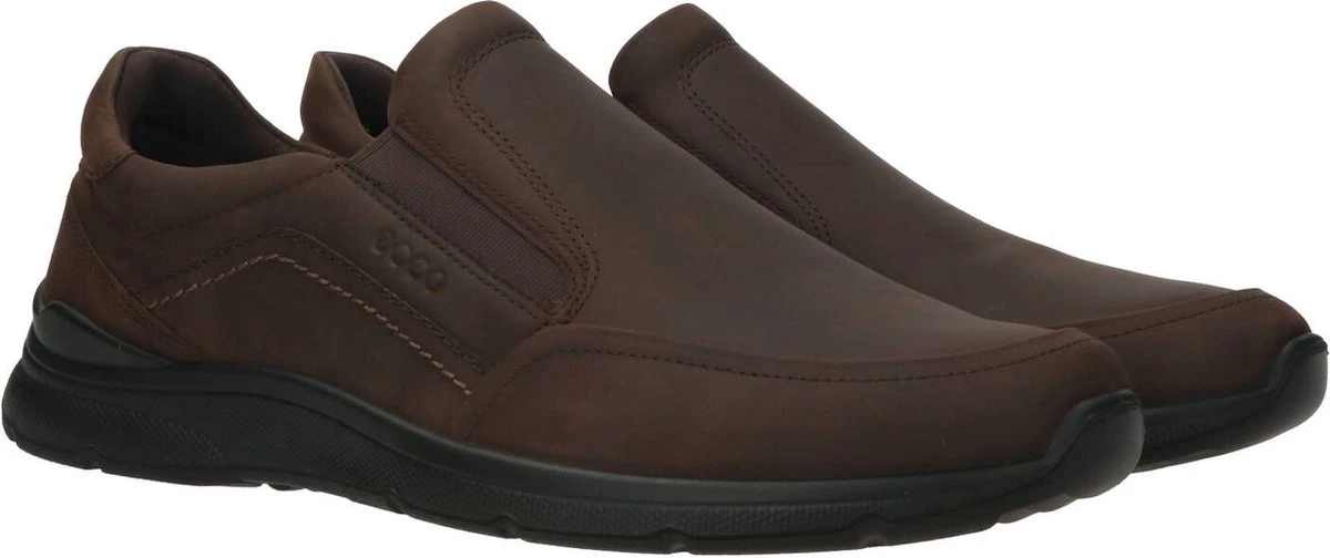 Bruine ECCO Irving instappers voor heren. Gemaakt van leer, een binnenwerk van leer en een stevige profielzool. De instappers hebben elastische inzetten voor een makkelijke instap. Het comfortabele voetbed is gemaakt van textiel. Deze is uitneembaar zodat je je eigen (steun)zooltjes in de schoenen kunt dragen. De ECCO Irving instappers hebben een rubberen zool die grip en demping biedt.