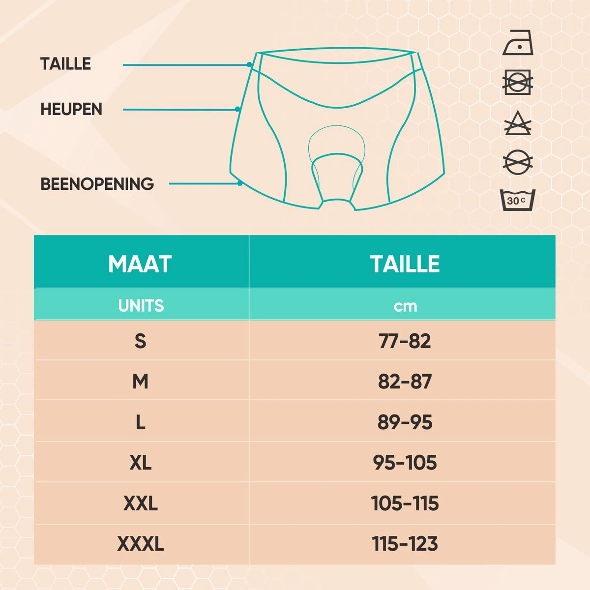 Bovenal is de HOOFF-fietsonderbroek uiterst effectief. Draag hem onder je normale sportbroek, en voor het beste effect ook zonder onderbroek. Zo is de ventilatie optimaal en heb je geen last meer van schurend ondergoed. Let wel op: Hij valt klein, bestel één maat groter dan je normaal hebt.