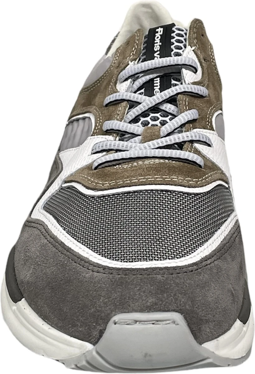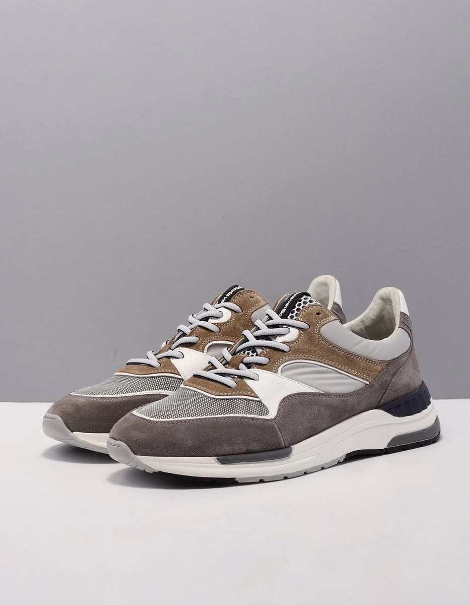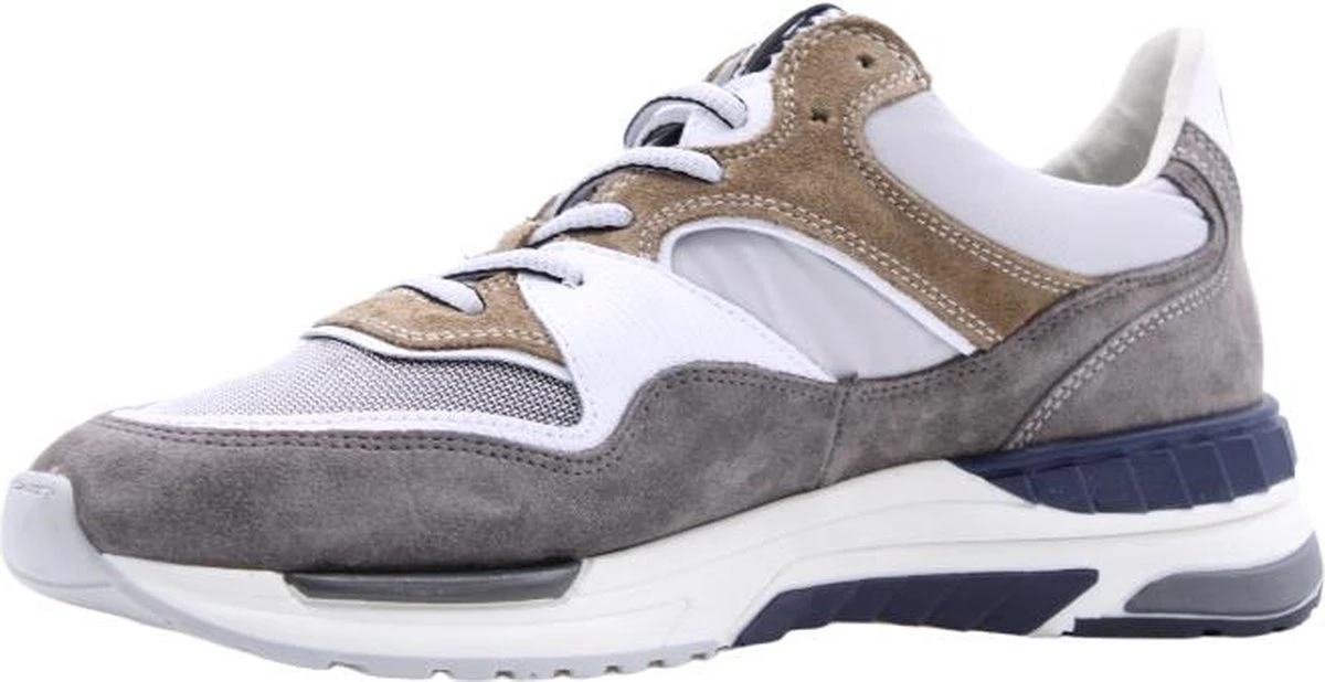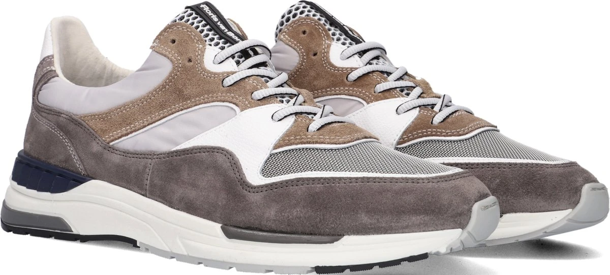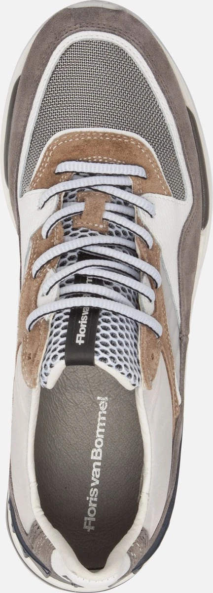 Deze bruine Floris van Bommel Jogger sneakers hebben een bovenwerk dat gemaakt is van verschillende materialen, namelijk suède met leren inzetten. De inzetten zijn voorzien van verschillende grijze en witte kleuren. De voering van deze sneaker is gemaakt van leer, net zoals de binnenzool. Voor een ideale pasvorm kun je de veters aantrekken zoals jij dat wilt. De rubberen zool heeft een hoogte van 3 centimeter. De schoenen zijn voorzien van een G ½ leest, waardoor ze iets breder vallen. Goed om te weten: het voetbed van deze Floris van Bommel sneakers is uitneembaar.