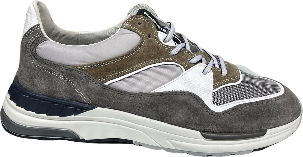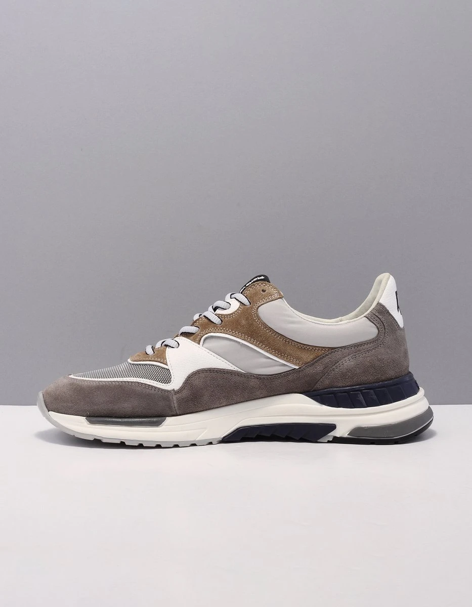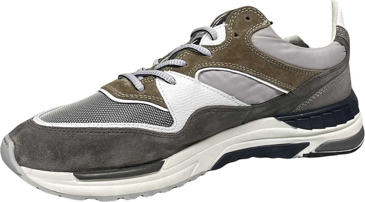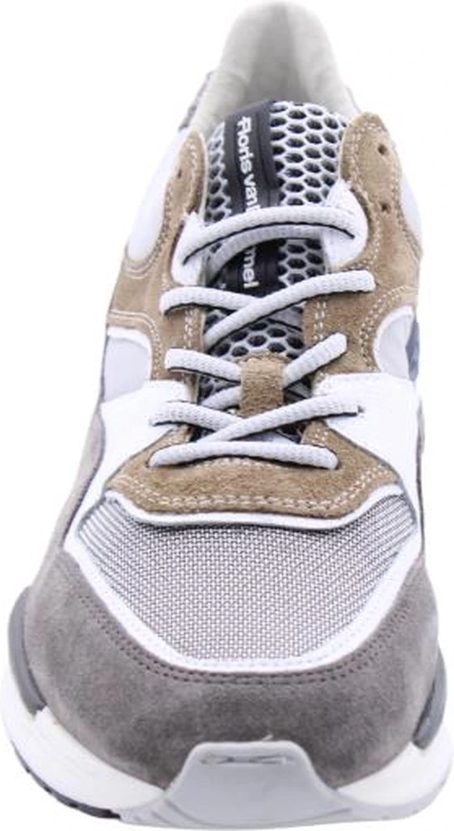 Deze bruine Floris van Bommel Jogger sneakers hebben een bovenwerk dat gemaakt is van verschillende materialen, namelijk suède met leren inzetten. De inzetten zijn voorzien van verschillende grijze en witte kleuren. De voering van deze sneaker is gemaakt van leer, net zoals de binnenzool. Voor een ideale pasvorm kun je de veters aantrekken zoals jij dat wilt. De rubberen zool heeft een hoogte van 3 centimeter. De schoenen zijn voorzien van een G ½ leest, waardoor ze iets breder vallen. Goed om te weten: het voetbed van deze Floris van Bommel sneakers is uitneembaar.