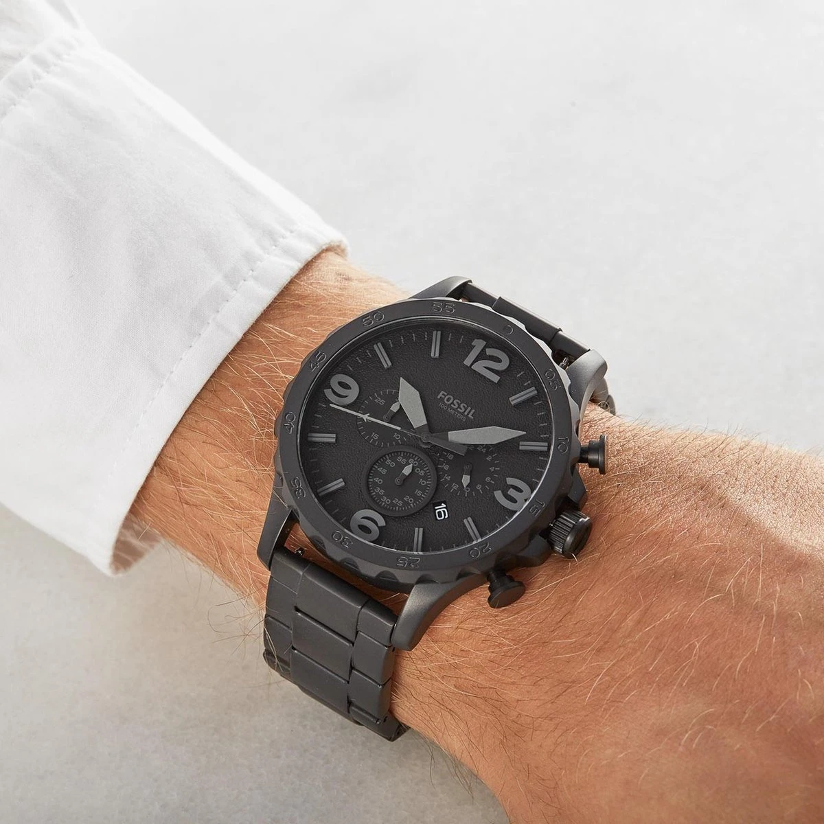 De Fossil Nate JR1401 is een tijdloos herenhorloge waar je jarenlang plezier van hebt. Dit horloge heeft een stalen horlogeband en stalen horlogekast met een diameter van 50 mm.