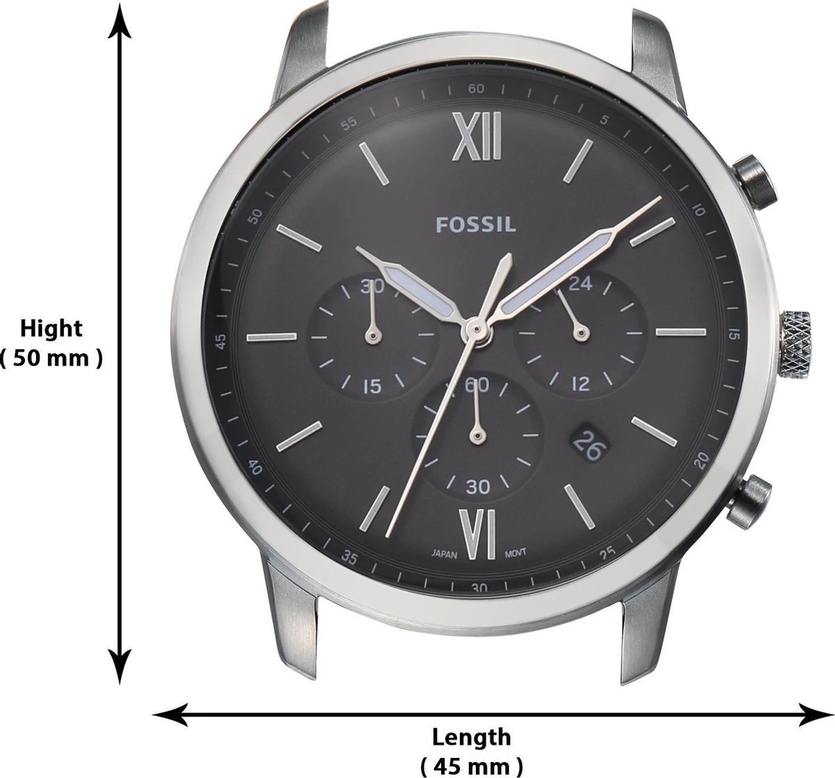 De Neutra Chrono collectie van Fossil bestaat uit modieuze horloges voor heren met smaak. Dit horloge heeft een stijlvolle band en de kast van het horloge is met zorg afgewerkt. De Fossil Neutra Chrono is antraciet van kleur en de horlogekast heeft een afmeting van 44 mm. Het bandje van het horloge is gemaakt van hoge kwaliteit kleur gecoat roestvrij staal.
