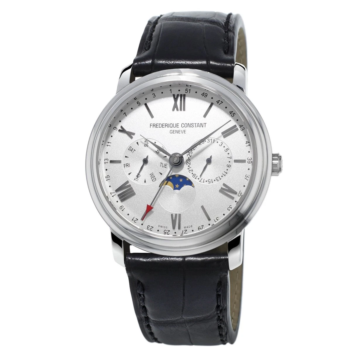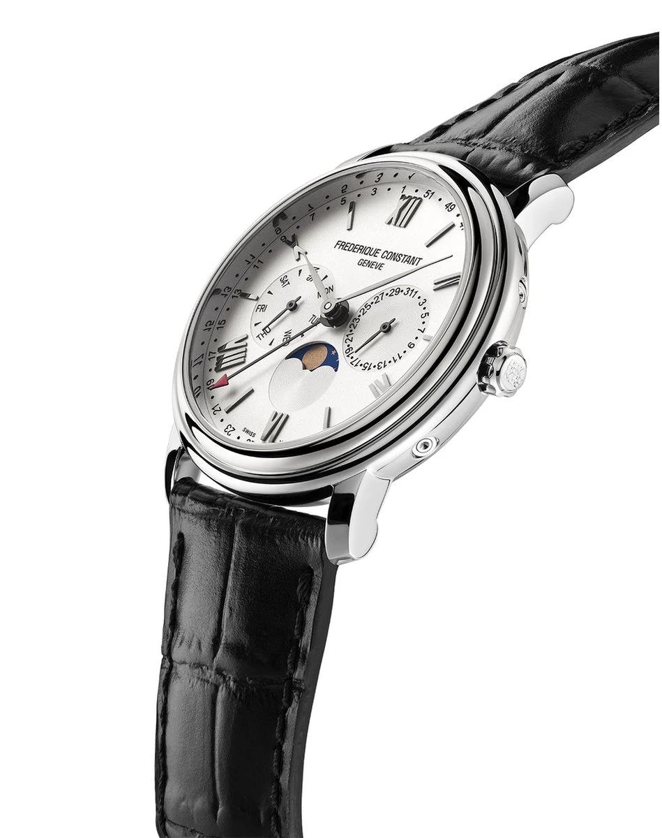 Dit Frédérique Constant Mannen horloge beschikt over een Quartz binnenwerk. De kast (40 mm) is vervaardigd uit Staal (Zilverkleurig) en heeft een Saffierglas. De band is Zwart Leer. Dit horloge uit de Classics reeks is een mooi en tijdloos geschenk. Verras jezelf of iemand anders met dit cadeau. Bovendien geniet u hierbij van 2 jaar garantie tegen alle fabricagefouten.