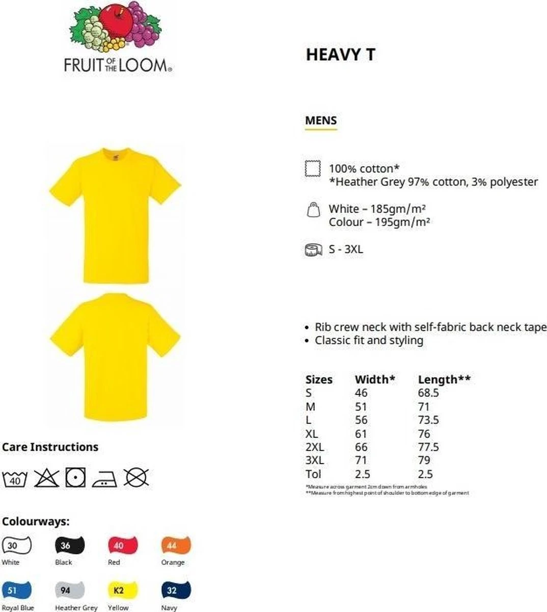 Een van de meest populaire kledingstukken van Fruit of the Loom is het Heavy T-shirt. Dit t-shirt is gemaakt van hoogwaardig katoen en is ontworpen om comfortabel en duurzaam te zijn.