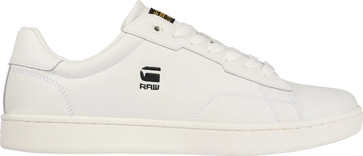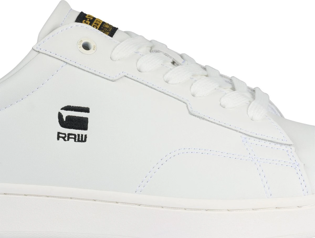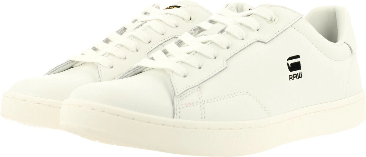 Deze witte lage sneakers Cadet van het merk G-Star hebben een coole uitstraling en passen bij elke look! Het bovenwerk is gemaakt van glad lederlook met design stiksels en G-Star Raw graphics op de zijkant en hiel. Op de tong bevindt zich een textiel merklabel en de zoolrand heeft een reliëf merkopdruk. De schoen is gevoerd met mesh en voorzien van een vast voetbed. De licht opgevulde hiel zorgt voor loopcomfort en ondersteuning en dankzij de flexibele rubberen zool met grafisch profiel heb je grip bij iedere stap. Combineer ‘m onder een toffe jeans en je bent ready to go!