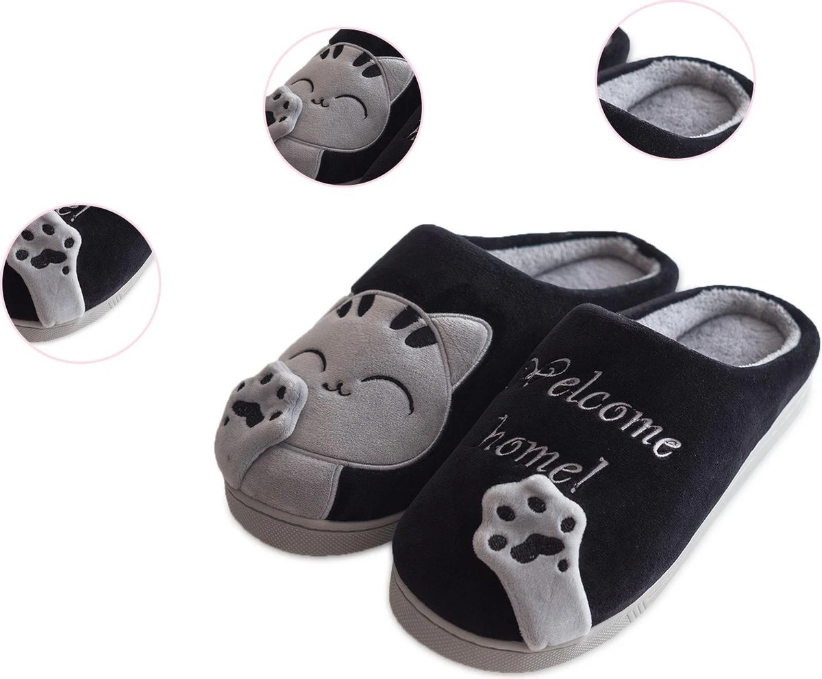 Maak je klaar om te ontspannen na een lange dag met deze comfortabele en knusse pantoffels. Deze pluche pantoffels in een muilezel design, waarmee je ze gemakkelijk aan en uit kunt trekken, hebben een buitenkant van zacht koraal fluweel, een duurzame TPR loopzool en mooie kattendetails en een koraal fleece voering.De zachte pantoffel is perfect om door het huis, in het hotel of waar u maar wilt, uitzonderlijk comfort te schuifelen.