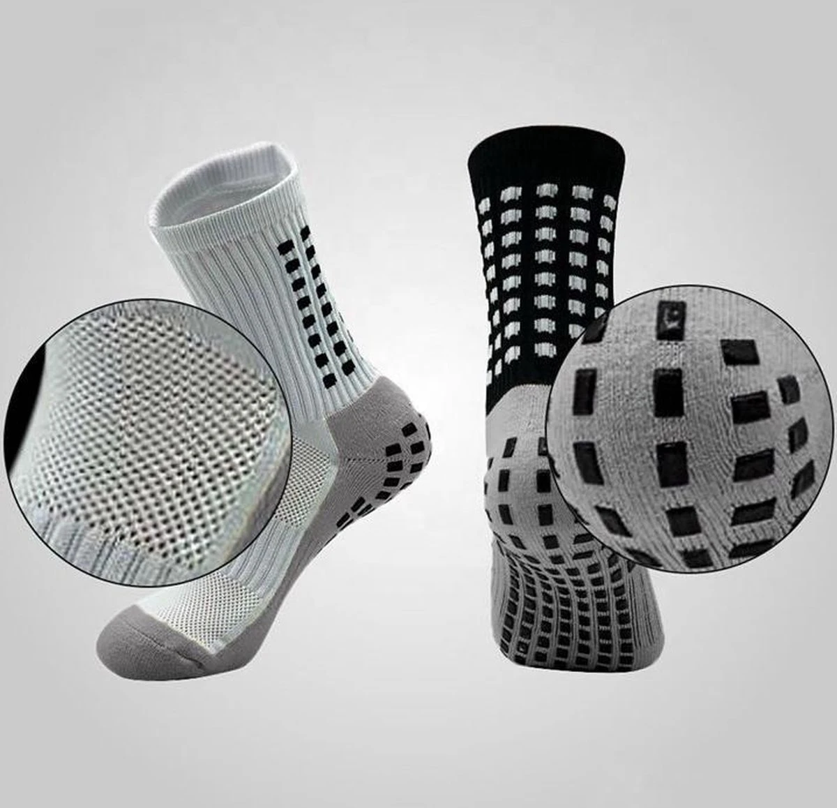 Waarom grip sokken?Als allereerst zitten de gripsokken enorm comfortabel en luchten ze goed door. In combinatie met de grippads aan de onderkant lijkt het alsof je één bent met jouw schoen. Hierdoor wordt voorkomen dat je glijdt in jouw schoenen wat op zijn beurt blaren voorkomt. Ook zorgen de grip sokken ervoor dat blessures voorkomen worden. Dit komt doordat de gripsokken zorgen voor stabiliteit. Dit zorgt voor betere ondersteuning en dus voorkomt het enkel- en voetblessures. Kortom, enorm veel voordelen om als sporter de gripsokken te dragen!