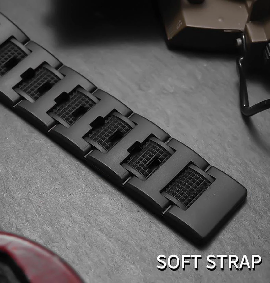 Dit horloge is echt een eyecatcher! Een prachtige zwarte kast, met glow in the dark wijzers met een stijlvolle stoere rubberen zwarte band.