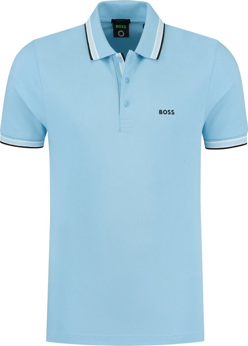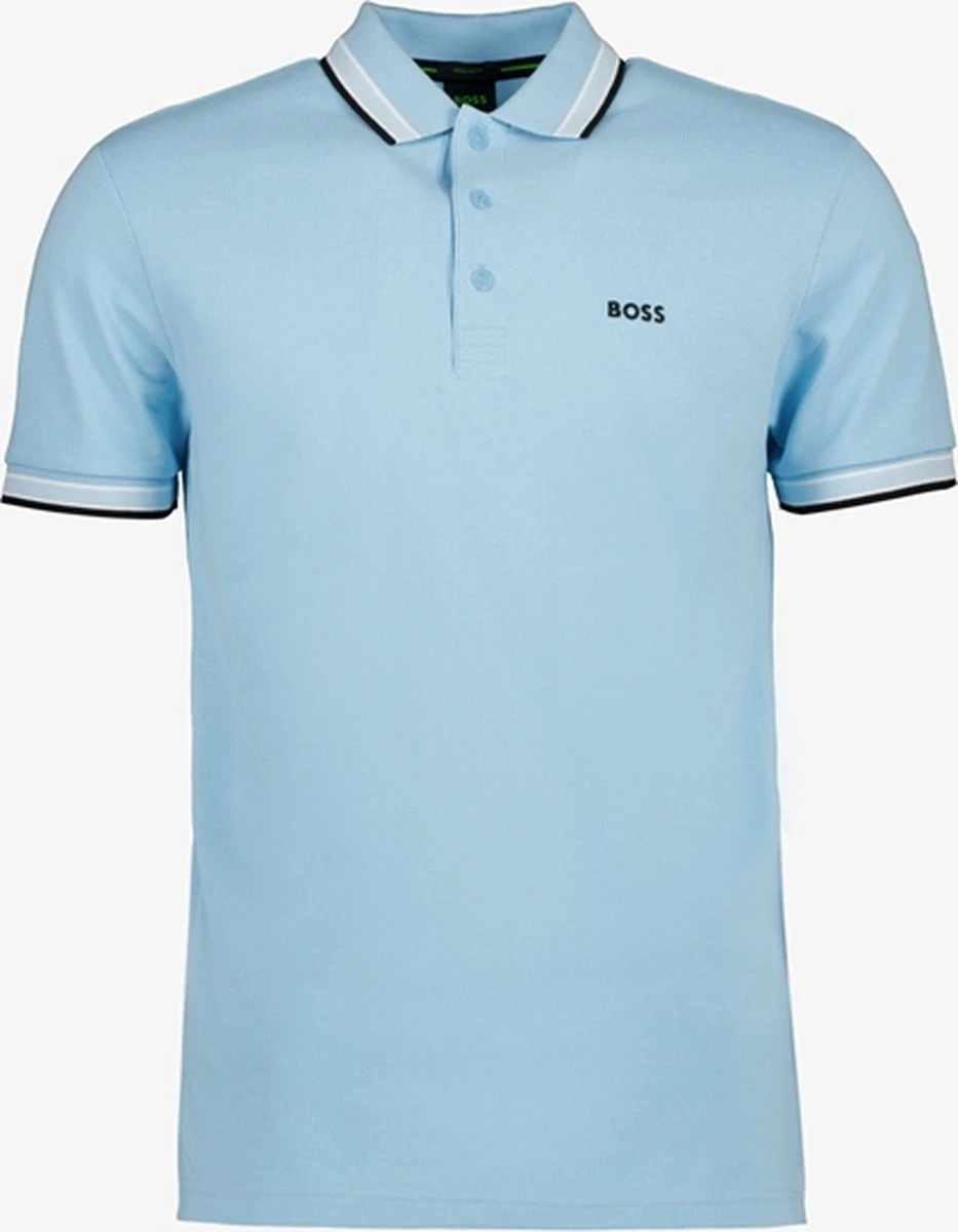 HUGO BOSS heren polo met Korte mouwen. Blauw Effen model met een Polo kraag gemaakt van 100% katoen in een luchtige Pique kwaliteit. Met deze polo ben je eigenlijk altijd goed gekleed! Het materiaal rekt mee waardoor deze polo heerlijk draagt, maar door de kraag en afwerking oogt deze polo netter dan een T-shirt. Combineer deze polo met een spijkerbroek en sneakers voor een sportieve look, een korte broek voor een zomerse look of draag de polo op een chino voor een klassieke look.