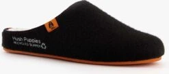 Zwarte recycled good slippers van Hush Puppies. Gemaakt van textiel. De pantoffels hebben een superzachte voering van katoen en een 100% gerecyclede schuim voetbed.