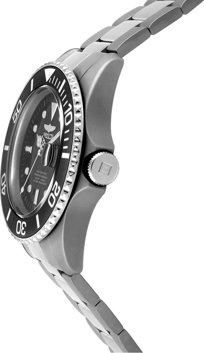 De Invicta 0420 uit de Pro Diver collectie heeft een zwarte wijzerplaat.
