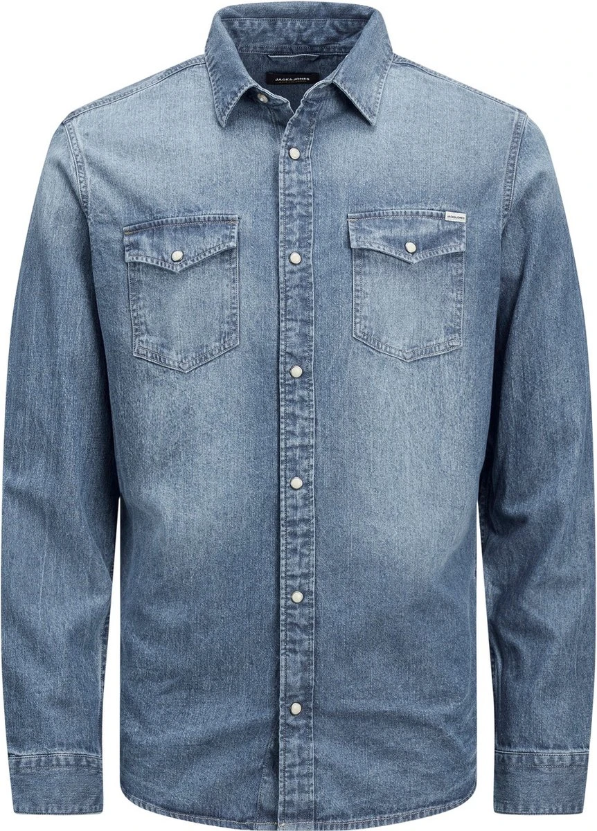 JACK&JONES denim overhemd met borstzakken en drukknoop sluiting