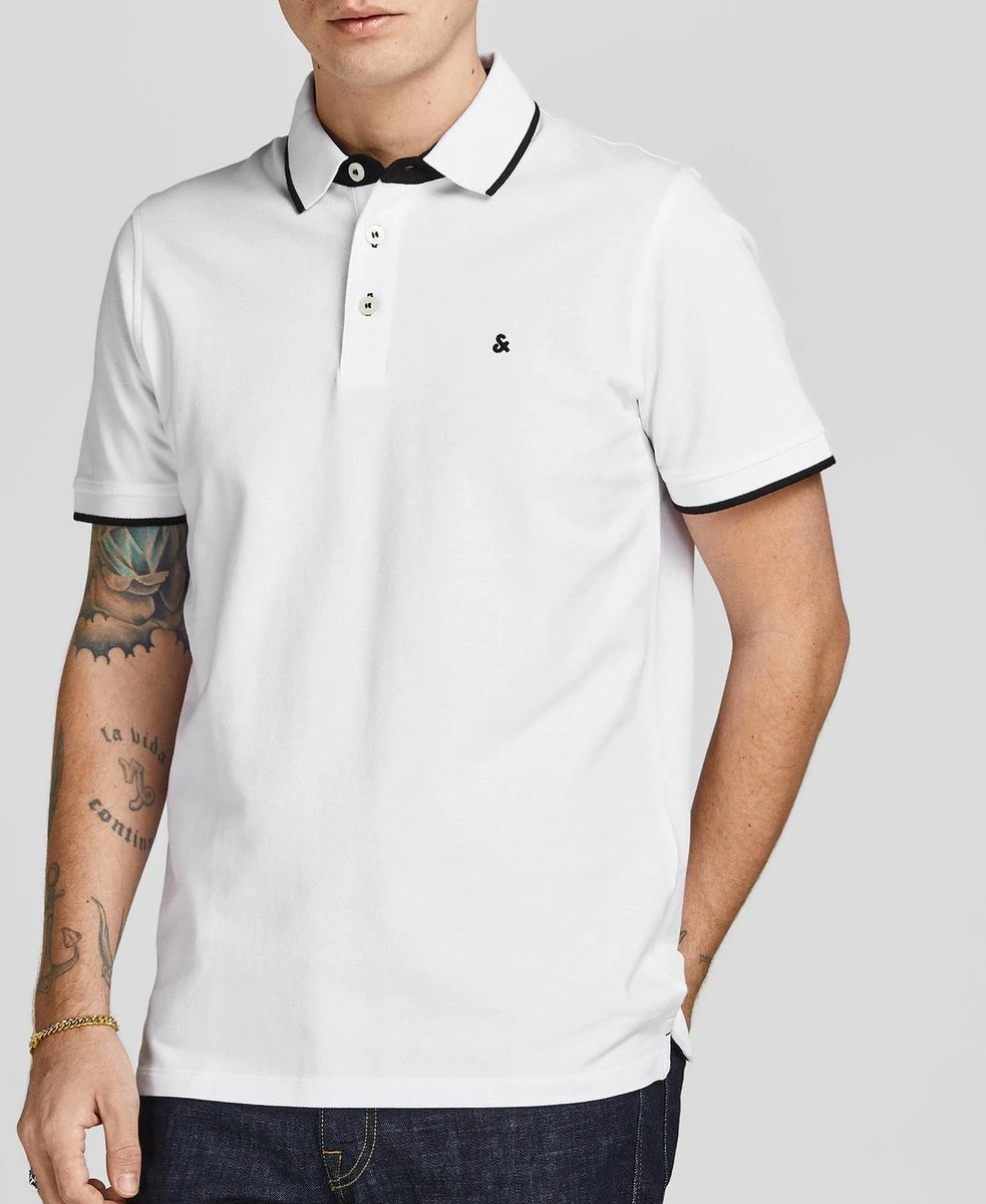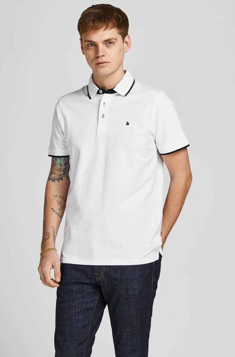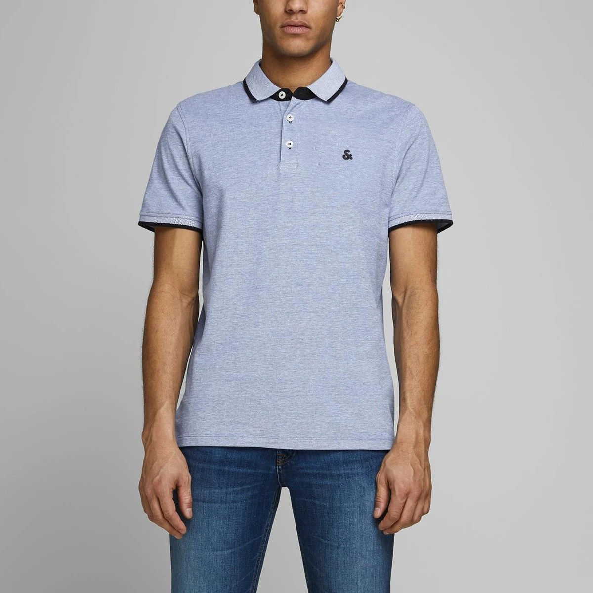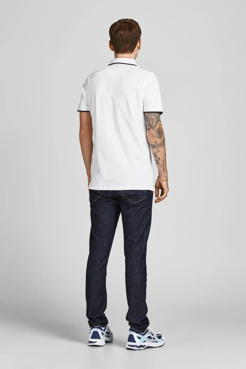 JACK&JONES CORE 2-pack Poloshirts in het lichtblauw en wit met contrasterende details in het zwart. De polo’s zijn gemaakt van 100% biologisch katoen.