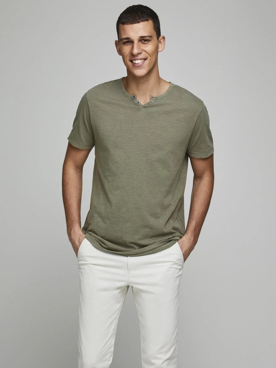 Klassiek effen T-shirt. Slub stof gemaakt van twee verschillende garen wat zorgt voor een slub textuur. – Type product : T-shirts – Hals : Split hals – Mouw lengte : Korte mouwen – Sluiting : Knoopsluiting