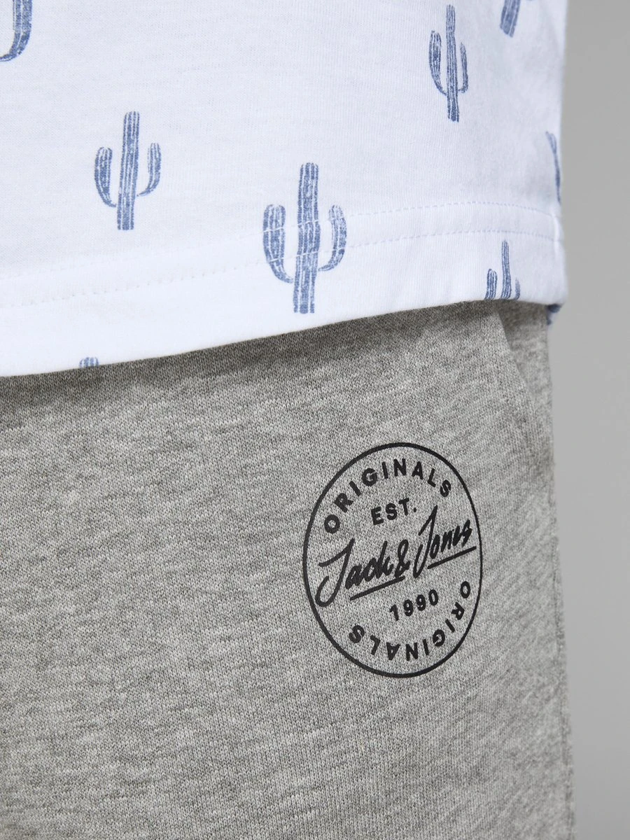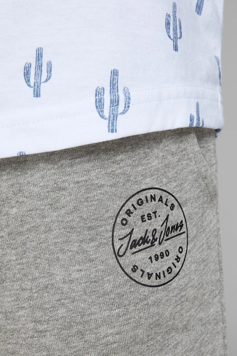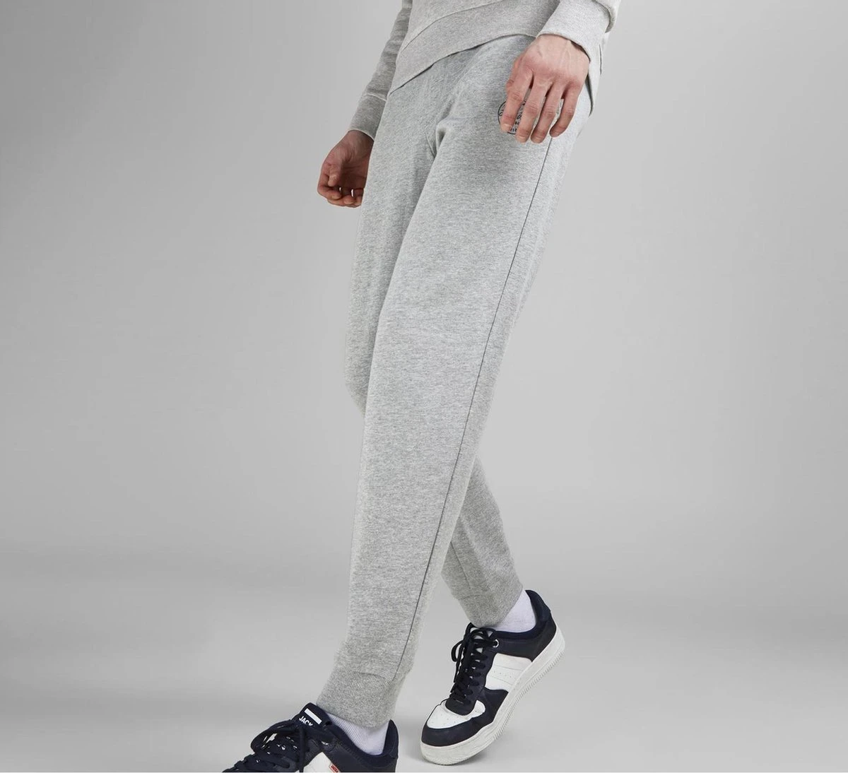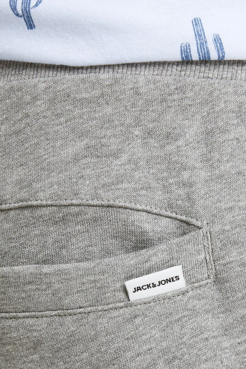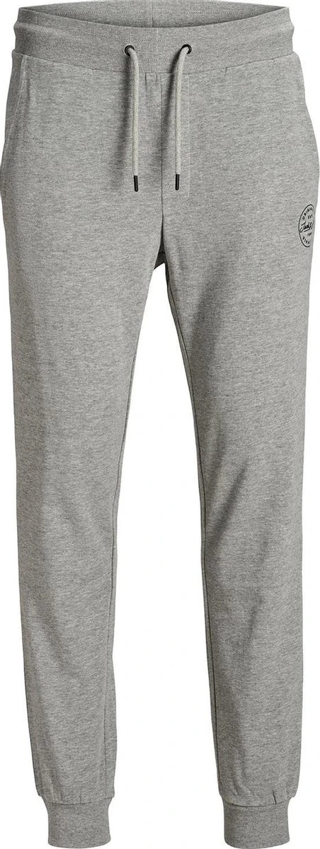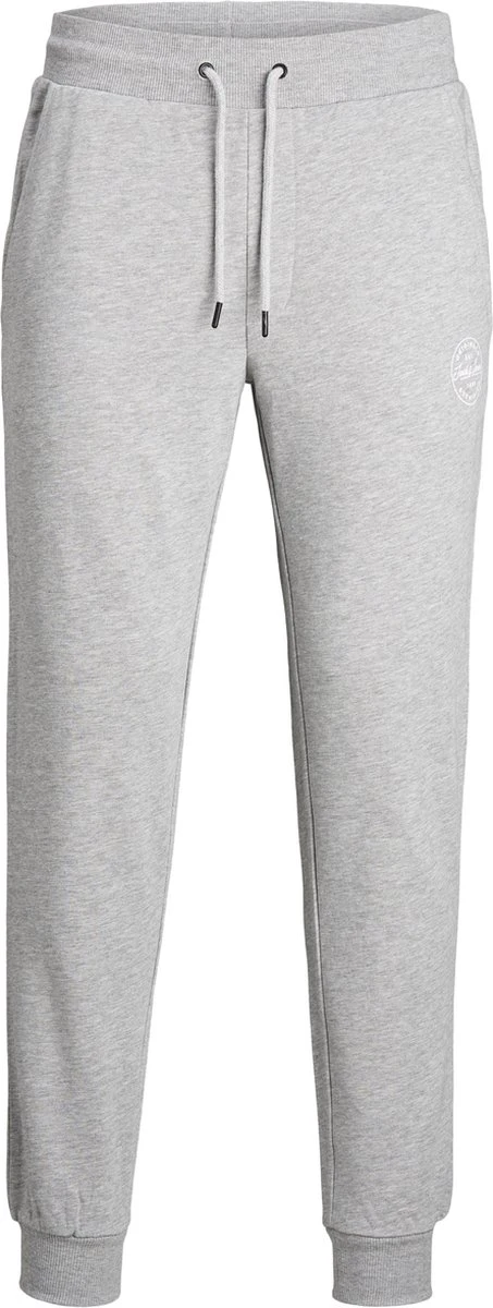 JACK&JONES licht grijze melange joggingsbroek met steekzakken, elastische band met koort en elastiek aan de onderkant van de pijp.