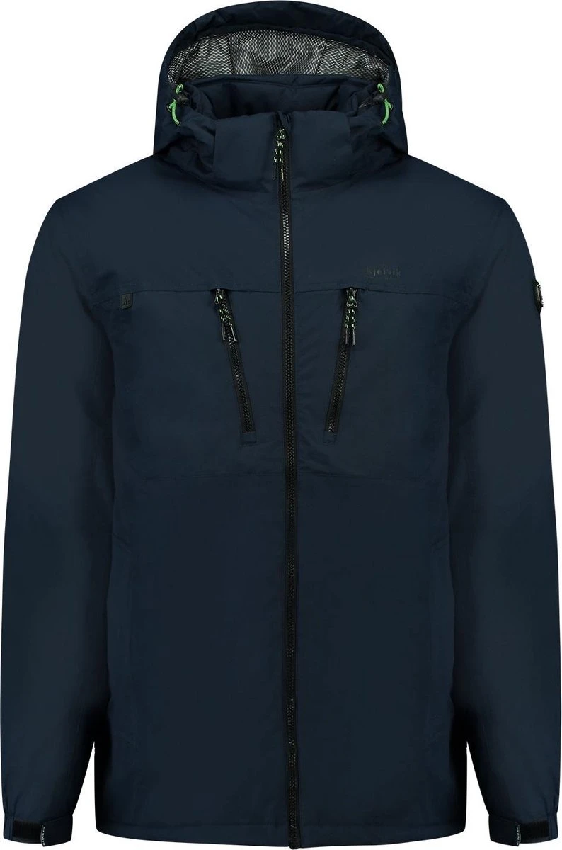 Functionele heren winterjas van Kjelvik. Leverbaar in de kleuren navy en green. Wind- en waterdicht. Soft touch. Getapte naden en afneembare capuchon. Binnenzak. Gemaakt van 100% nylon.