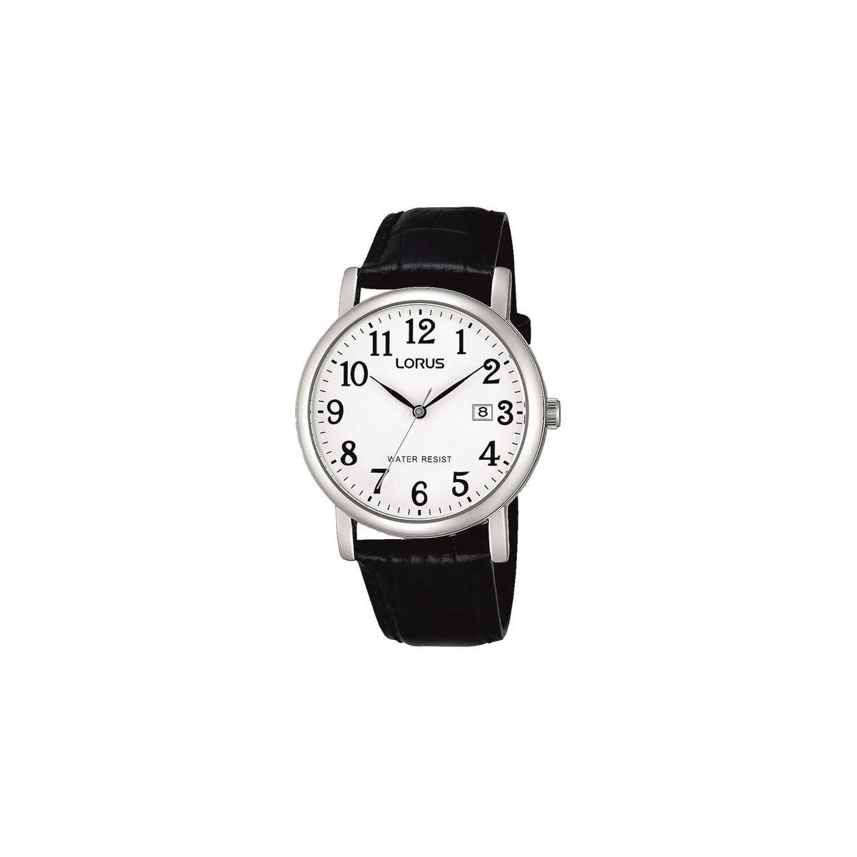 Lorus Heren Polshorloge- Klassiek vormgegeven met zwarte leren band en duidelijk afleesbare wijzerplaat met arabische index – Datumaanduiding