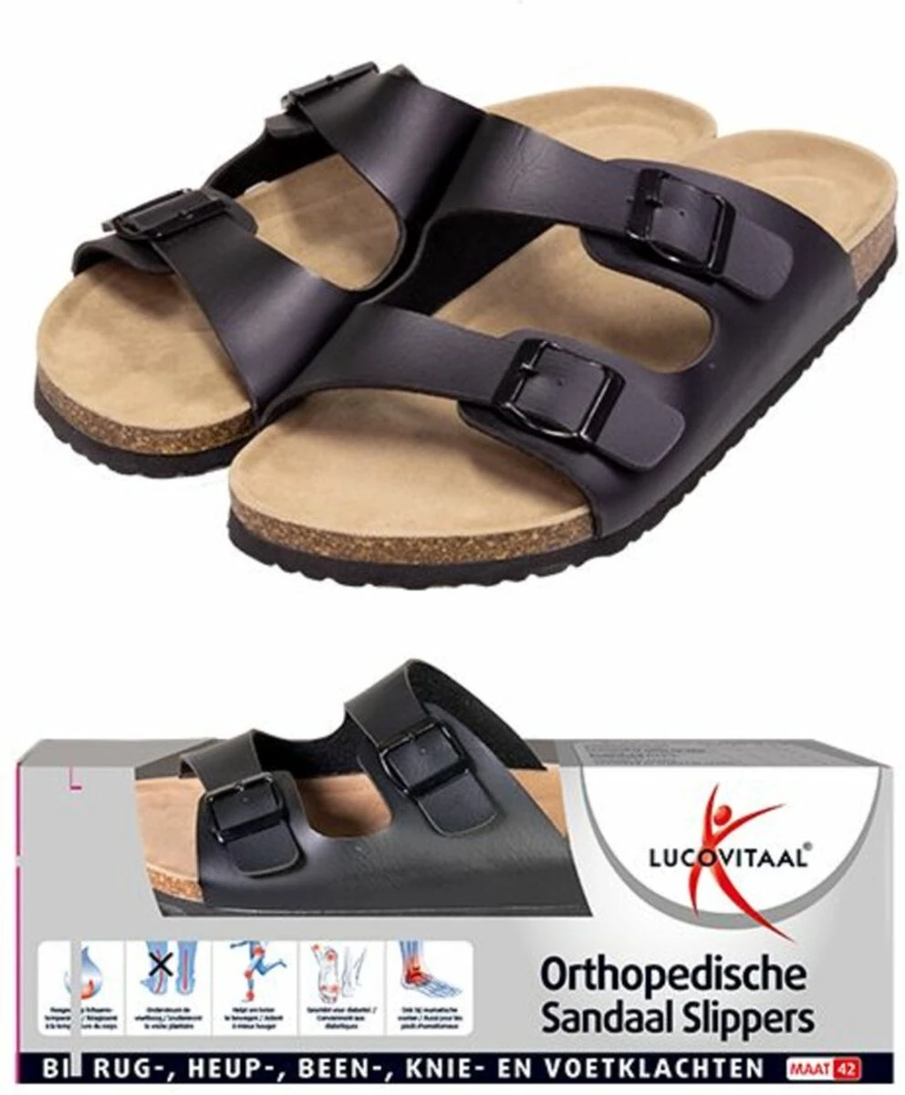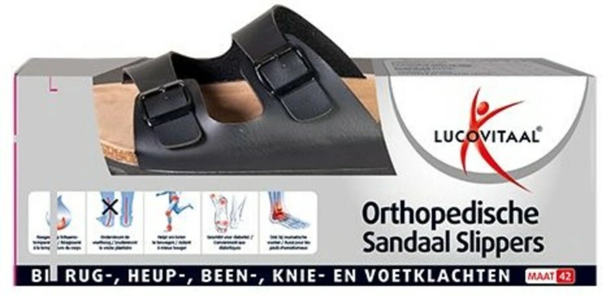 Lucovitaal Orthopedische Sandaal Slippers zijn zo ontworpen dat ze helpen bij rug-, heup-, been-, knie- en voetklachten. Het orthopedisch voetbed van de slipper zorgt voor een goede ondersteuning van de voeten. De loophouding wordt hierdoor gecorrigeerd en voorkomt zo problemen aan voeten en rug. De slipper biedt ondersteuning en schokdemping tijdens het lopen of staan en helpt bij pijnlijke voeten, benen, knieën, heupen en rug. De druk op de voeten wordt aanzienlijk verlicht en de voeten ontspannen terwijl ze rusten op het orthopedisch voetbed.De orthopedische slippers zijn ook geschikt voor diabetici en mensen met reumatische voeten. Een weldadige en therapeutische werking voor het lichaam. Als u deze slippers aan hebt wilt u ze niet meer uit doen!Lucovitaal Orthopedische Sandaal SlippersMet een orthopedisch voetbedVerlicht druk op de voeten zodat de voeten ontspannenBiedt ondersteuning en schokdemping tijdens het lopen en/of staanSpeciaal ontworpen on te hepen bij rug-, heup-, been-, knie- en voetklachten