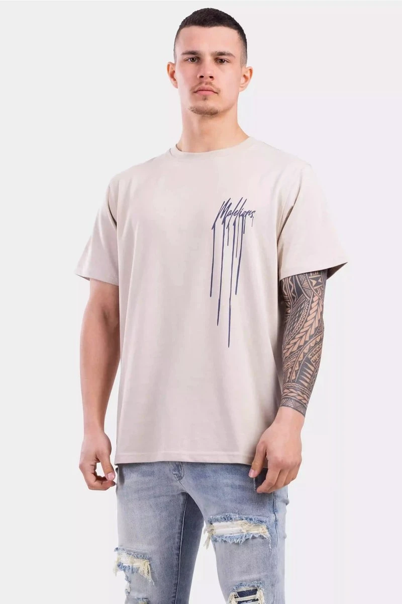 Malelions Dripped T-Shirt Senior Beige/Navy