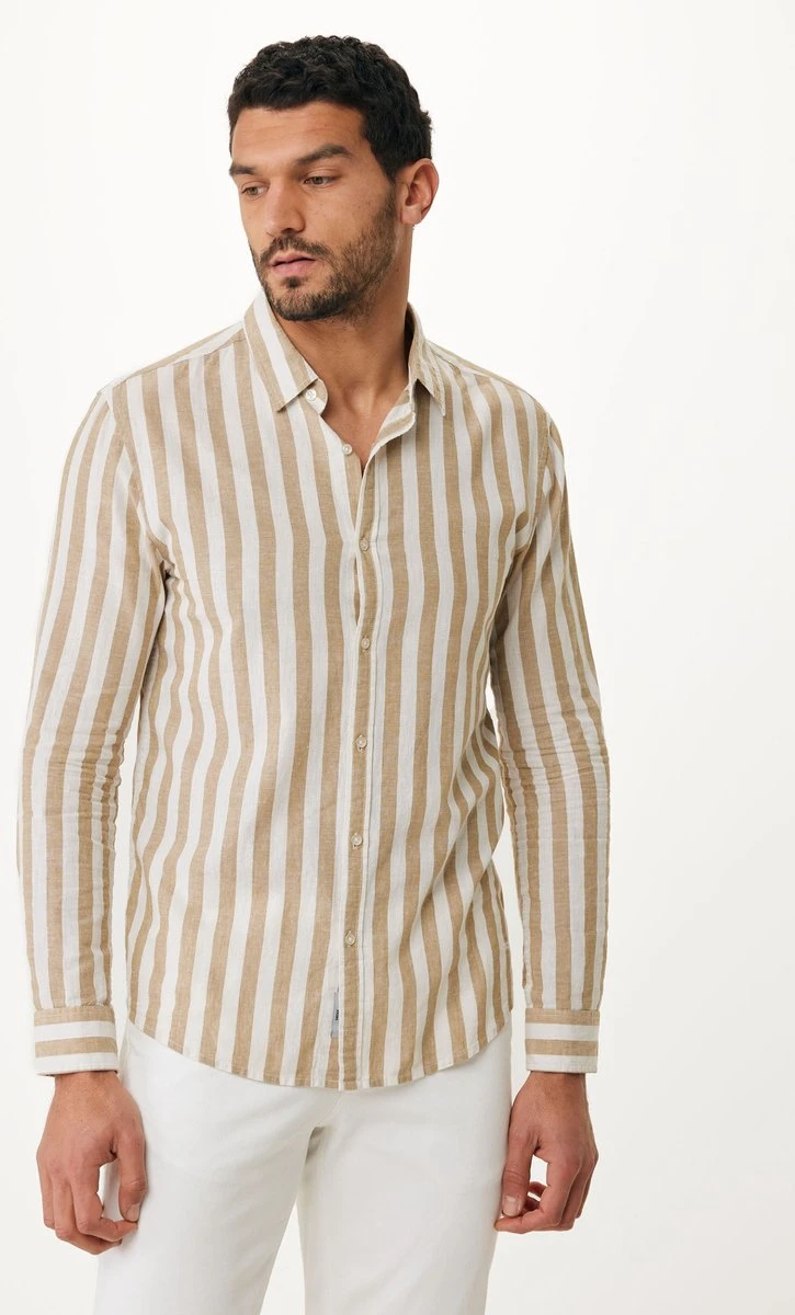 Shirt Striped Beige voor Mannen van het merk Mexx uit de collectie Lente/Zomer 2023. Materiaalcompositie: 70% Cotton 30% Linen