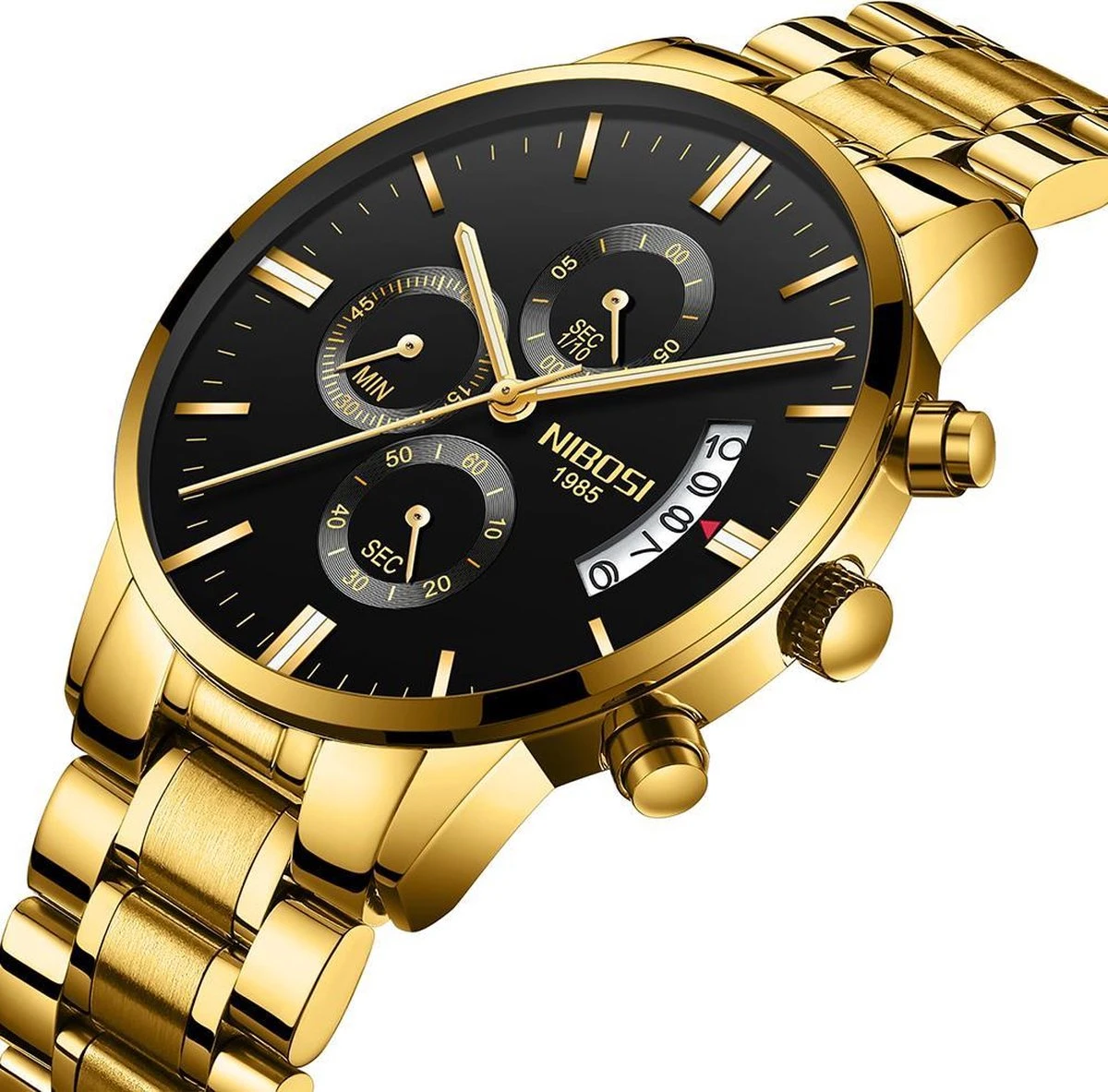 ➜ 1x NIBOSI Quartz Luxe Goudkleurig Design Herenhorloge