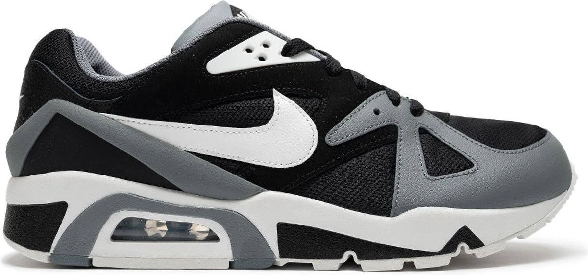 De Nike Air Structure Triax “Black/Smoke Grey” is een moderne release van de vintage performance hardloopschoen die debuteerde in 1991. In 2021 keerde de Air Structure Triax terug in zijn originele “Neo Teal” colorway en kreeg veel waardering van veteraan en nieuwe sneaker voor verzamelaars. De “Black/Smoke Grey” geeft het model een update met een neutraal kleurenschema. Een zwarte mesh-basis contrasteert met ton-sur-ton synthetische nubuck-overlays en Smoke Grey-leren overlays. Een wit lederen Swoosh-logo verschijnt aan de zijkanten. Klassieke “Nike Air “branding is geborduurd op de hiel. Onder de voet omringt een rookgrijs paneel de zichtbare luchtbel.