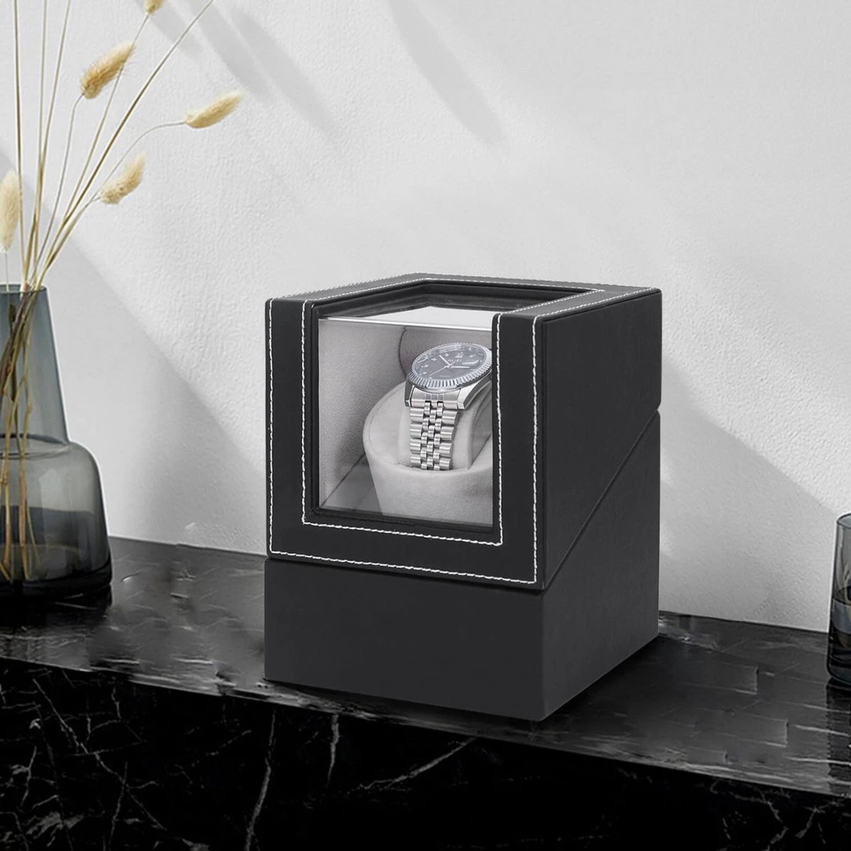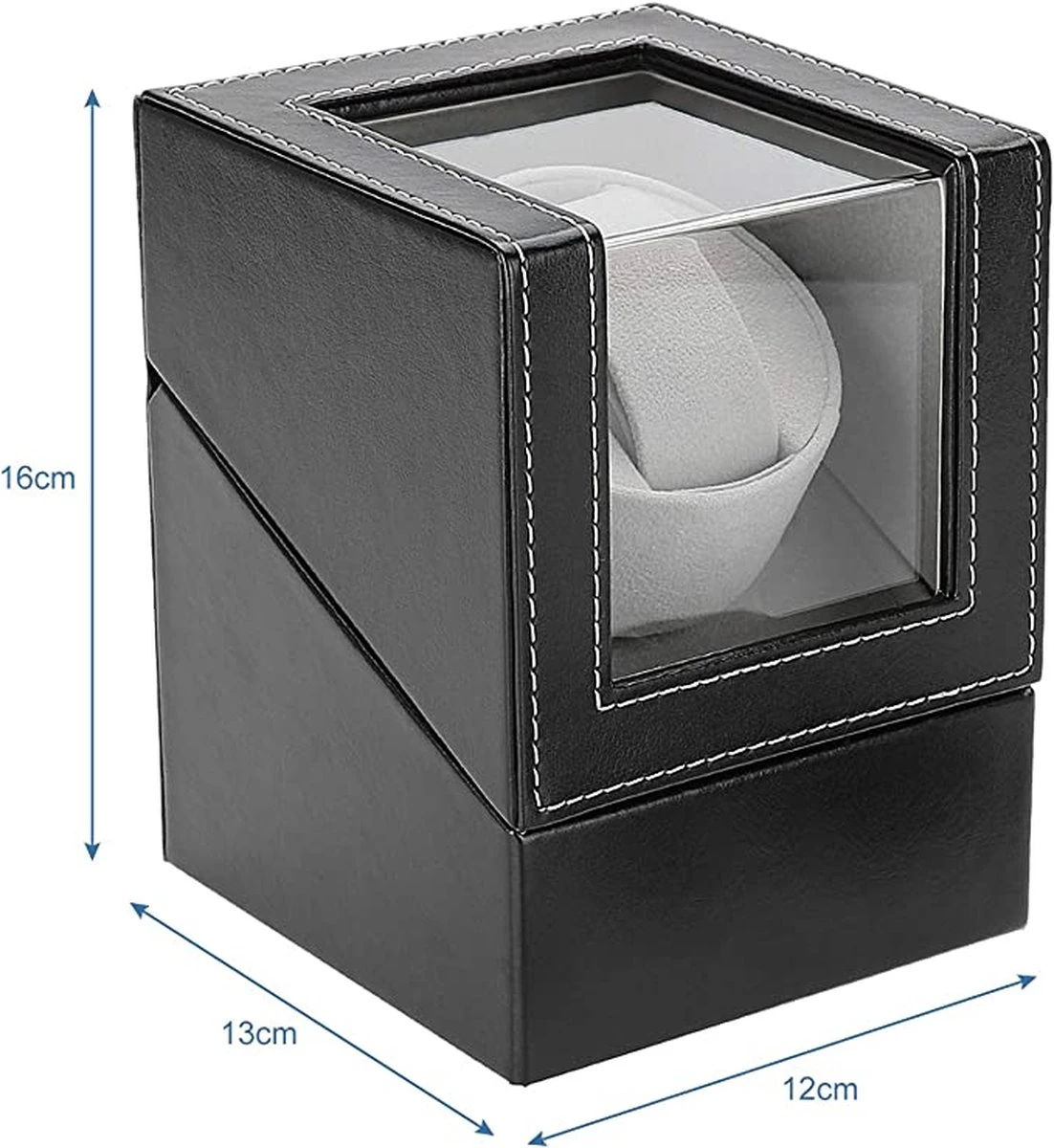 De watchwinder is gemaakt van hoogwaardig MDF en PU-leer en is voorzien van een organisch acrylglas venster wat stof en vocht buiten houdt. Het elegante leren ontwerp geeft de box een luxueuze uitstraling. Daarnaast beschermt de zachte binnenkant het horloge tegen krassen en de verstelbare kussens in het midden zijn geschikt voor horloges van verschillende afmetingen.